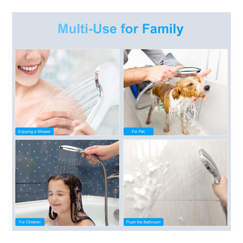 Die Universal Handbrause ist ideal für Haushalte mit niedrigem Wasserdruck, da sie eine beeindruckende Sprühkraft bietet, ohne dabei den Wasserverbrauch zu erhöhen. Dank der integrierten Power-Wash-Funktion können Sie nicht nur sich selbst, sondern auch Ihre Wanne, Fliesen und sogar Ihre Haustiere effizient reinigen.