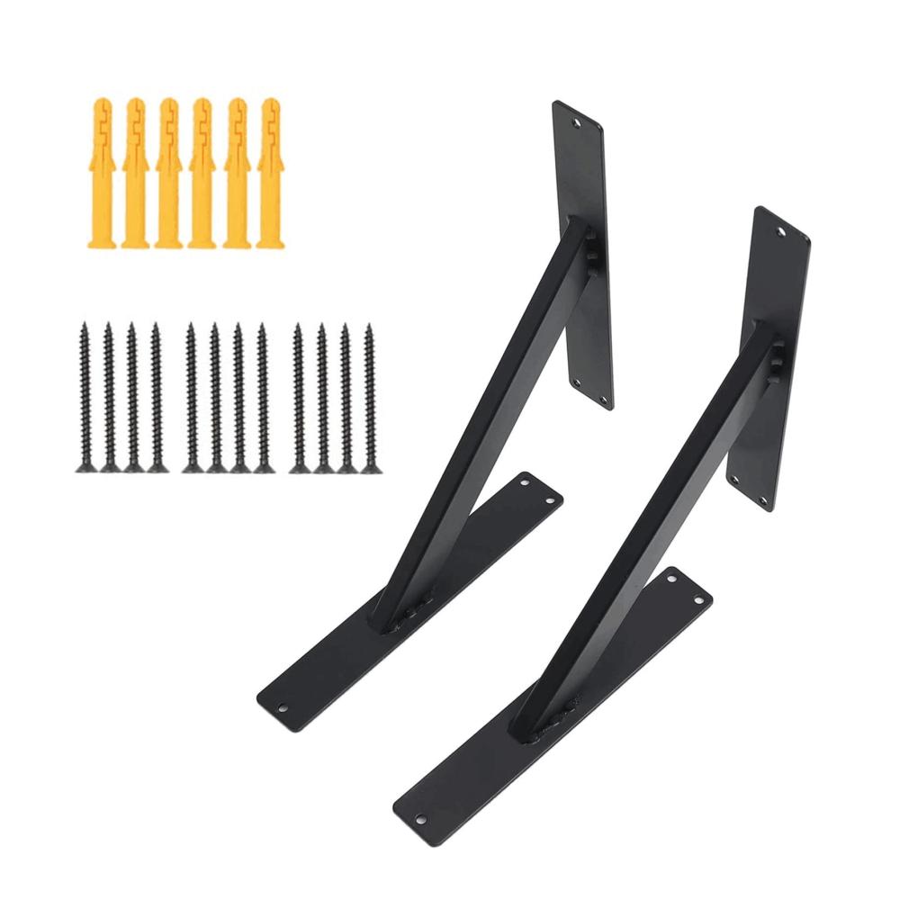 【Spezifikationen】Hervorragende Qualität; Material: Eisen; Farbe: schwarz; Lieferumfang: 2pcs Regalhalter mit Schrauben und Dübel; Geeignet für den Außenbereich
