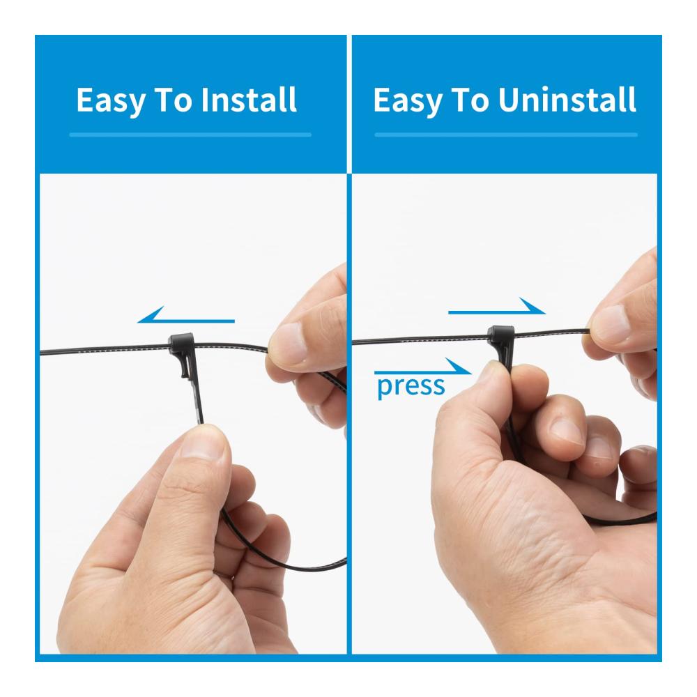 Anwendung: Drücken Sie einfach den Schiebeknoten. Die Kabelbinder öffnen und schließen einfach und schnell, so können Sie Kabel hinzufügen oder entfernen. Perfektes Kabelmanagement. Beliebt bei Vintage, Dekorateur, Designer, Ingenieur und Hausfrau.
