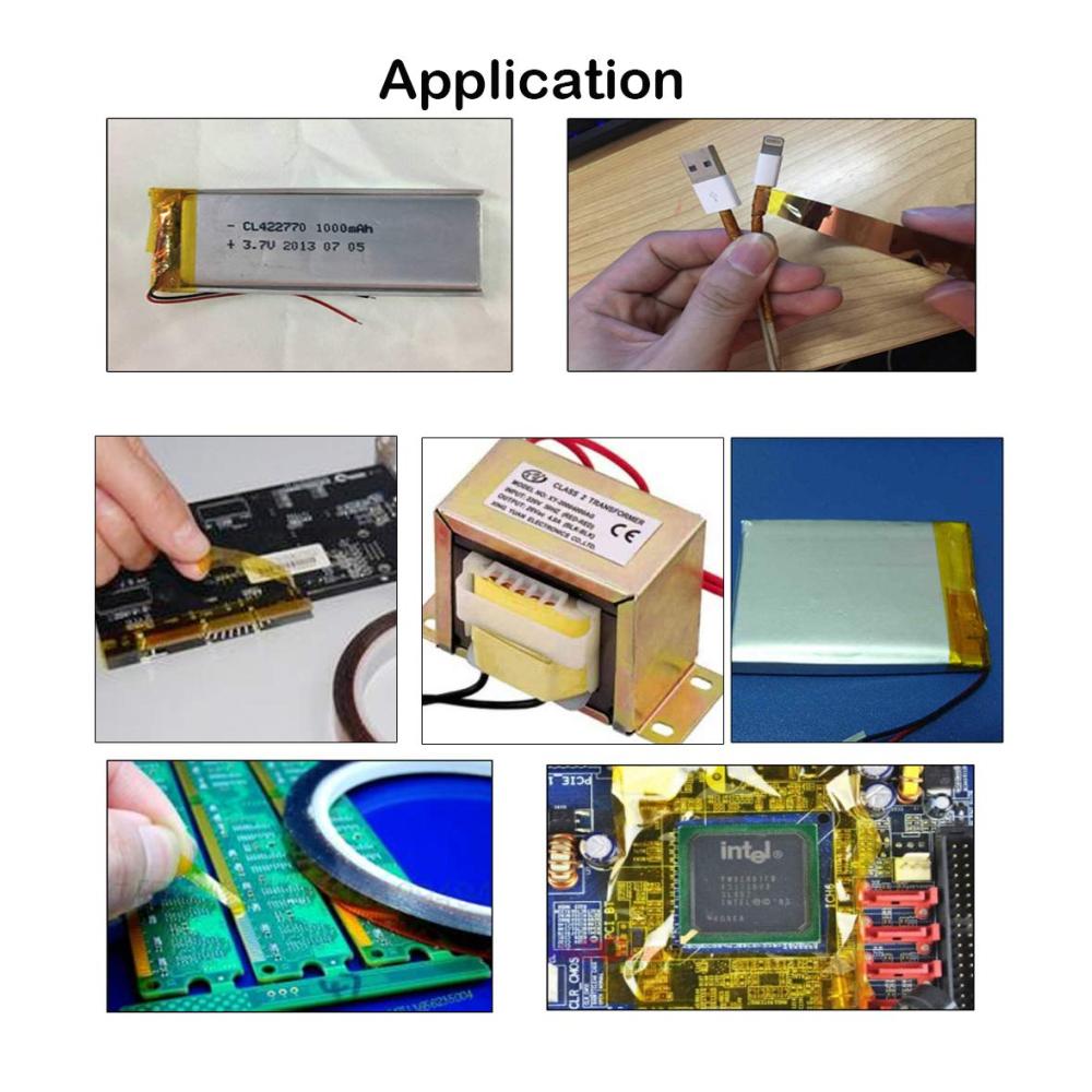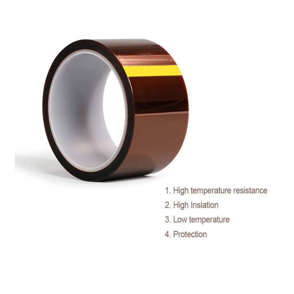 Spezifikationen: Materialzusammensetzung: Polyimid-Polymerfolie und Silikonkleber. Leistung: 50 % dehnbar, Klebstoffstärke 0,055 mm. Hitzebeständigkeit: Die höchste Temperatur bis zu 300 °C, langfristig. Temperatur: 260 °C / kurzfristige Temperatur: 300 °C. Anwendungen: Wellenlöten Glasfaserkabel. Isolierende Leiterplatten Kfz-Sensor und Krümmer Halbleiterherstellung Radierung Hochtemperatur-Pulverbeschichtung. 3D-Drucker Lieferumfang: 1 x Hochtemperatur-Klebeband.