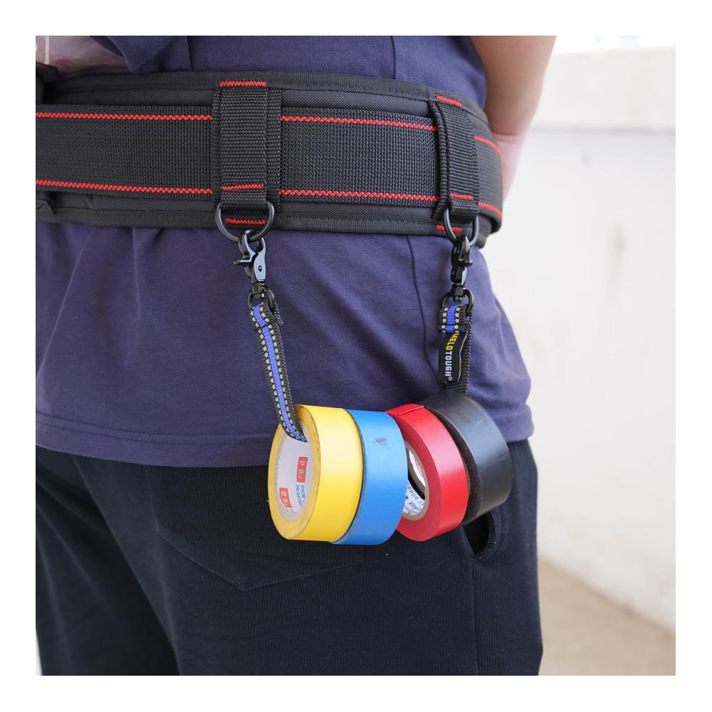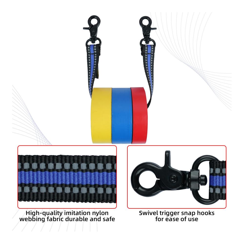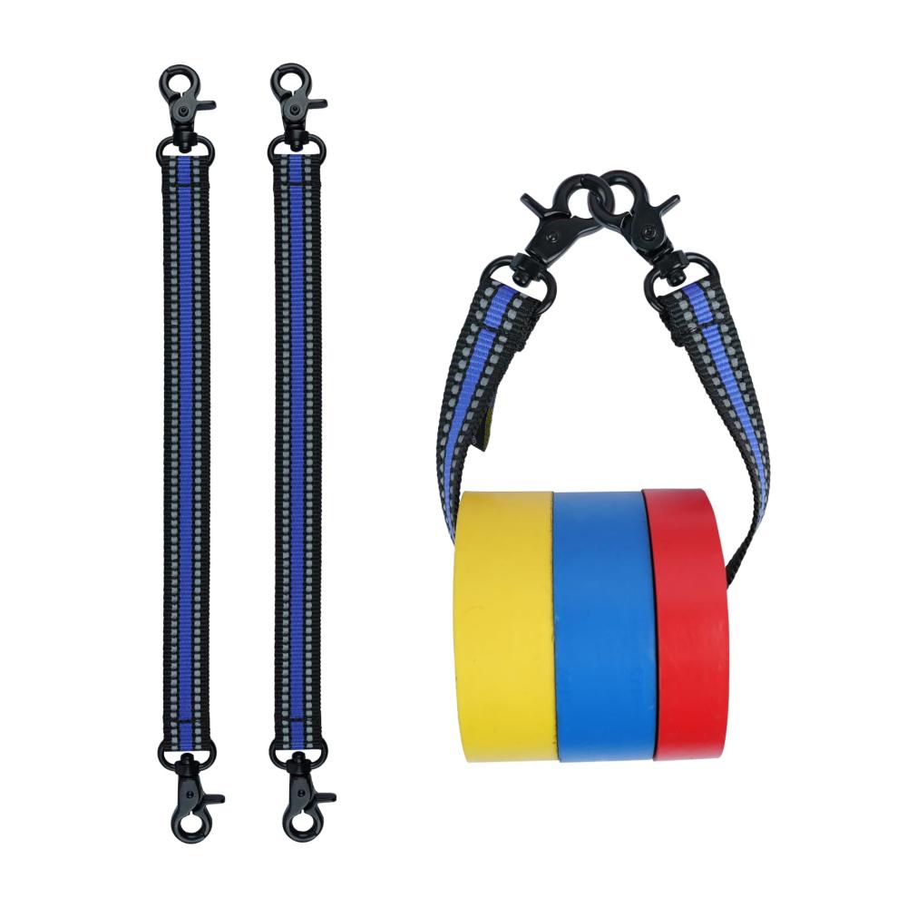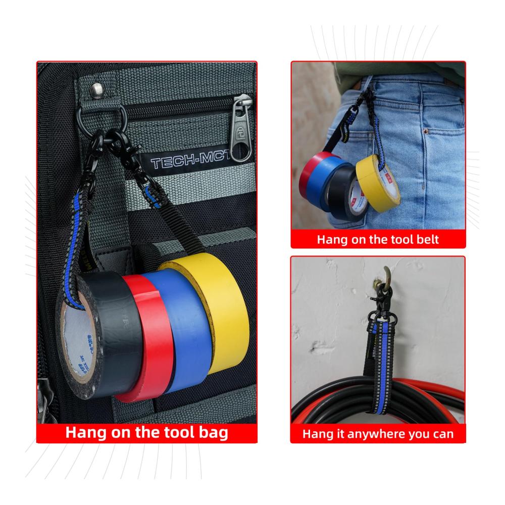 ⚙ Hochwertiges elektrisches Klebeband: Bandhalter aus hochfestem Polyester, reflektierende Streifen und Metall-Karabinerhaken, stark, sicher, nicht leicht zu rosten und zu brechen, mit guter Tragfähigkeit, kann das Isolierband sicher halten und wiederverwenden.