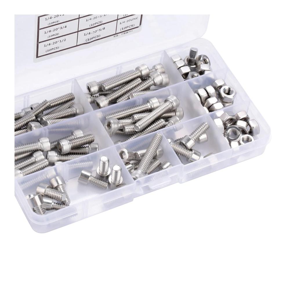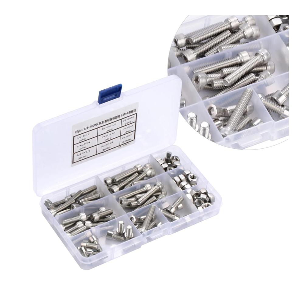 Dieses Set enthält präzisionsgefertigte 1/4-20UNC Innensechskantschrauben, die sich perfekt für verschiedene Anwendungen eignen. Die Auswahl an Sechskantschrauben ermöglicht Ihnen eine vielseitige Verwendung in industriellen Projekten oder für Reparaturen rund um das Haus.