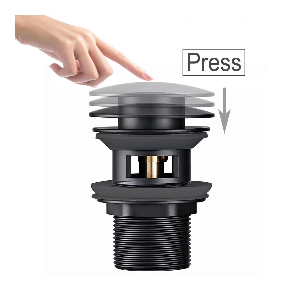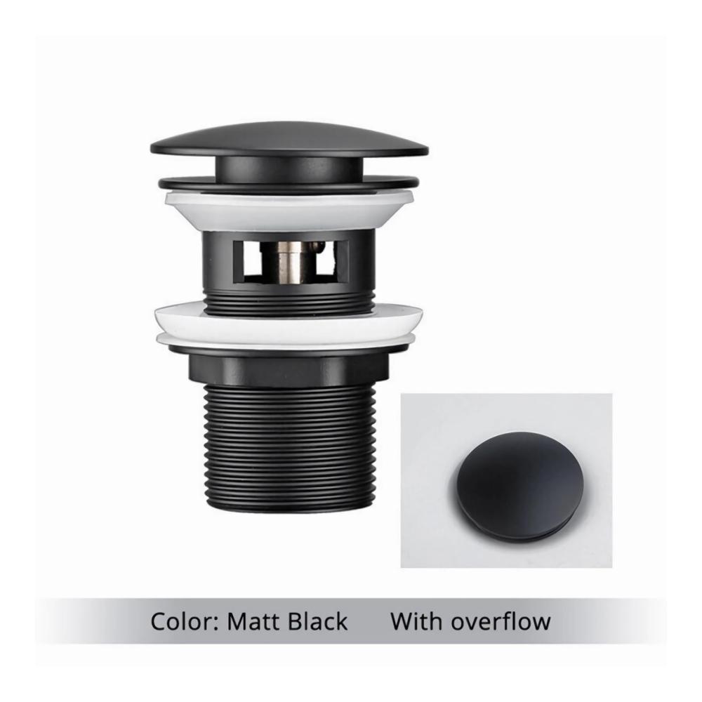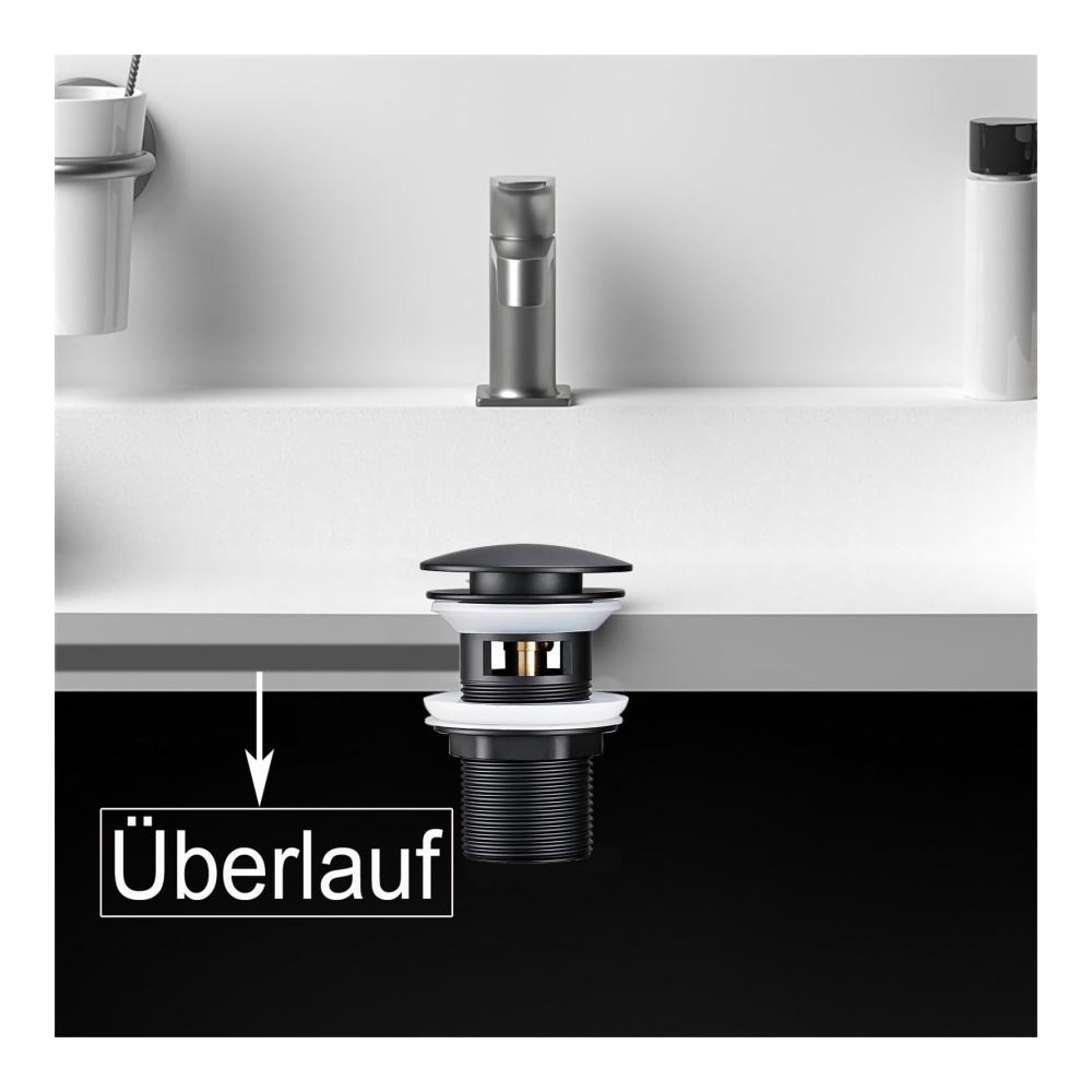 Universal Waschbecken Ablaufgarnitur Ohne Überlauf Abflussgarnitur Pop Up Ventil Waschtisch Abfluss Ventil Click Clack Schwarz Messing & Edelstahl (Überlauf)