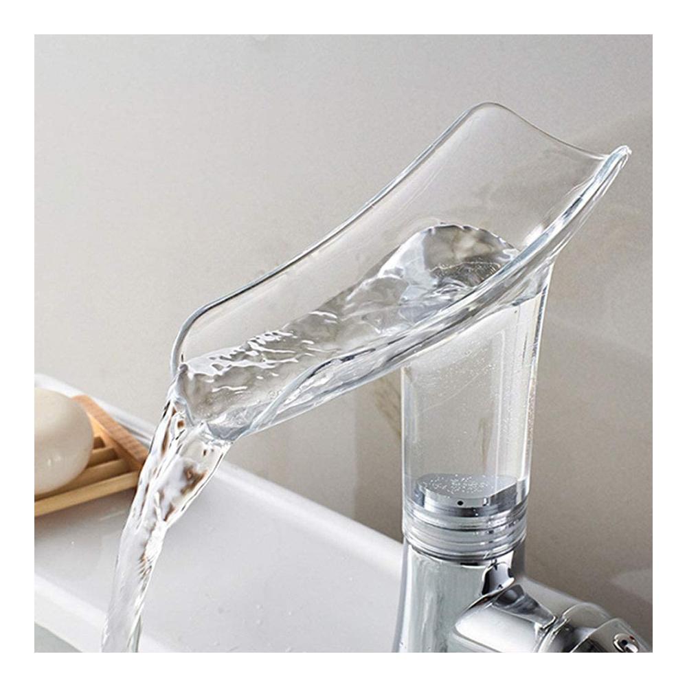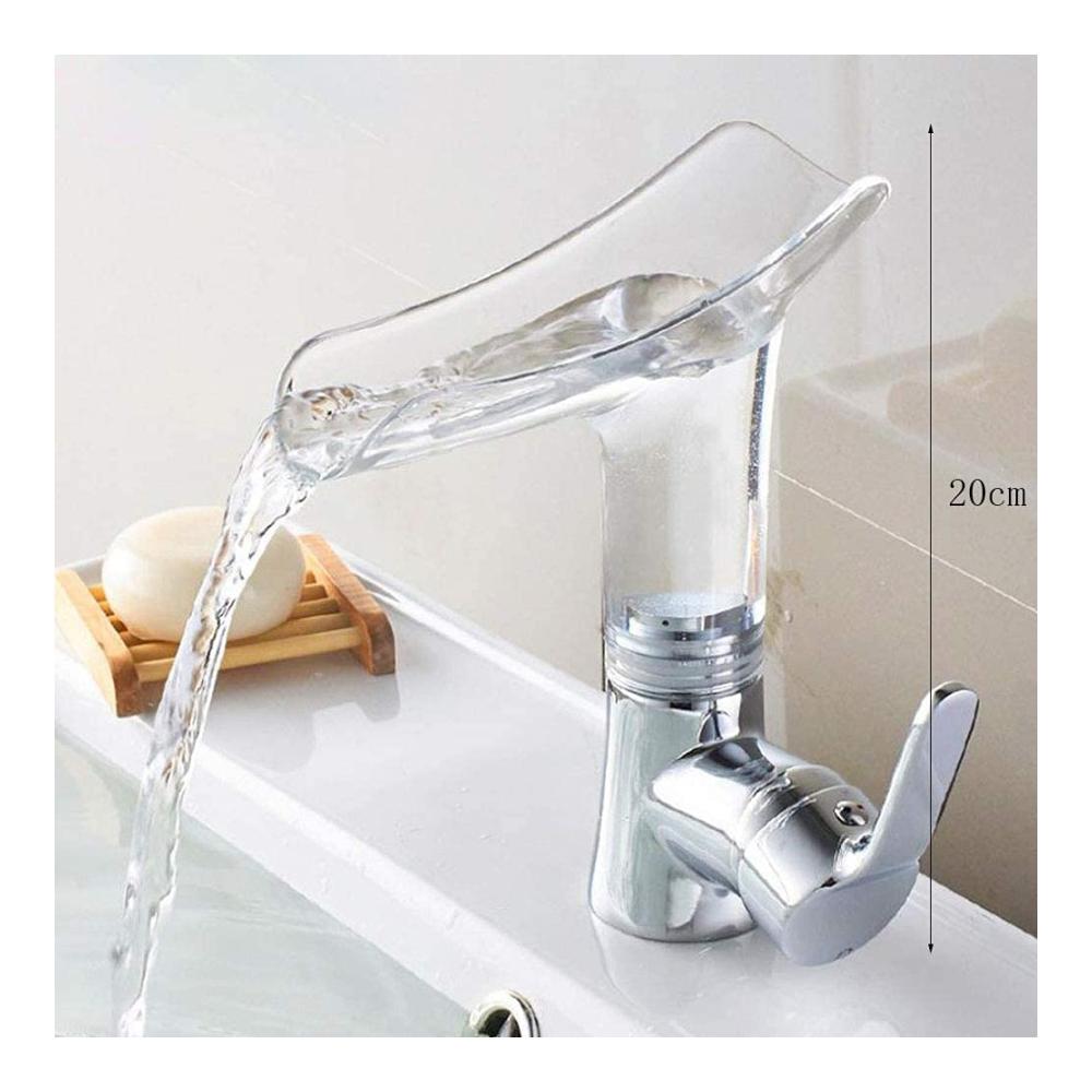 Wasserhahn Messing Wasserfall Glas Badezimmer Waschbecken Armatur Einhebel Einloch Wasserfall Waschbecken Wasserhahn Chrom polierter Finish Heiß Kalt Wasser Mischer Waschbecken Wasserhähne Wasserhahn/Gelb