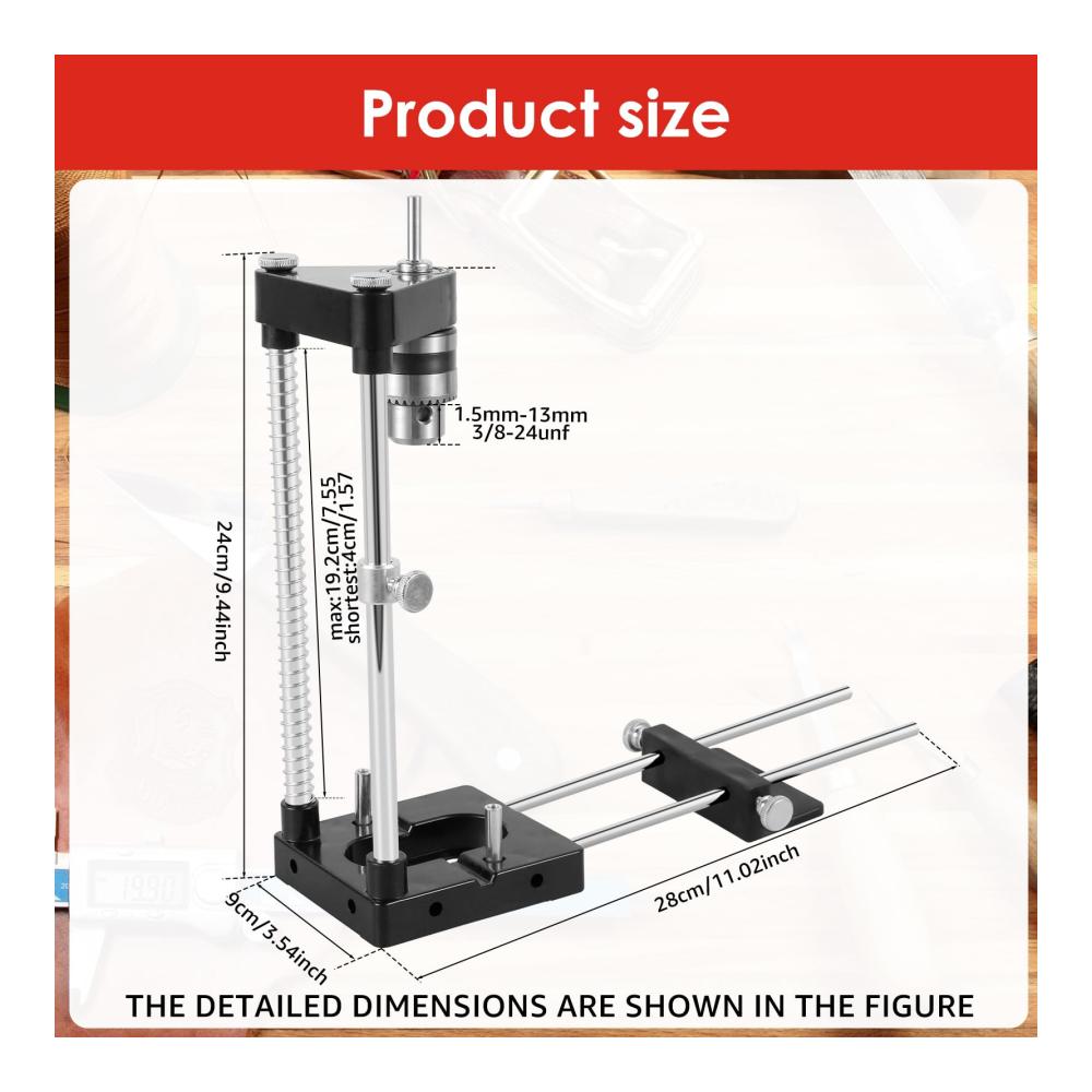 1. Der Bohrständer besteht aus hochwertigem legiertem Stahl und ABS, das rostfrei, praktisch, robust, kompakt und leicht zu transportieren ist.