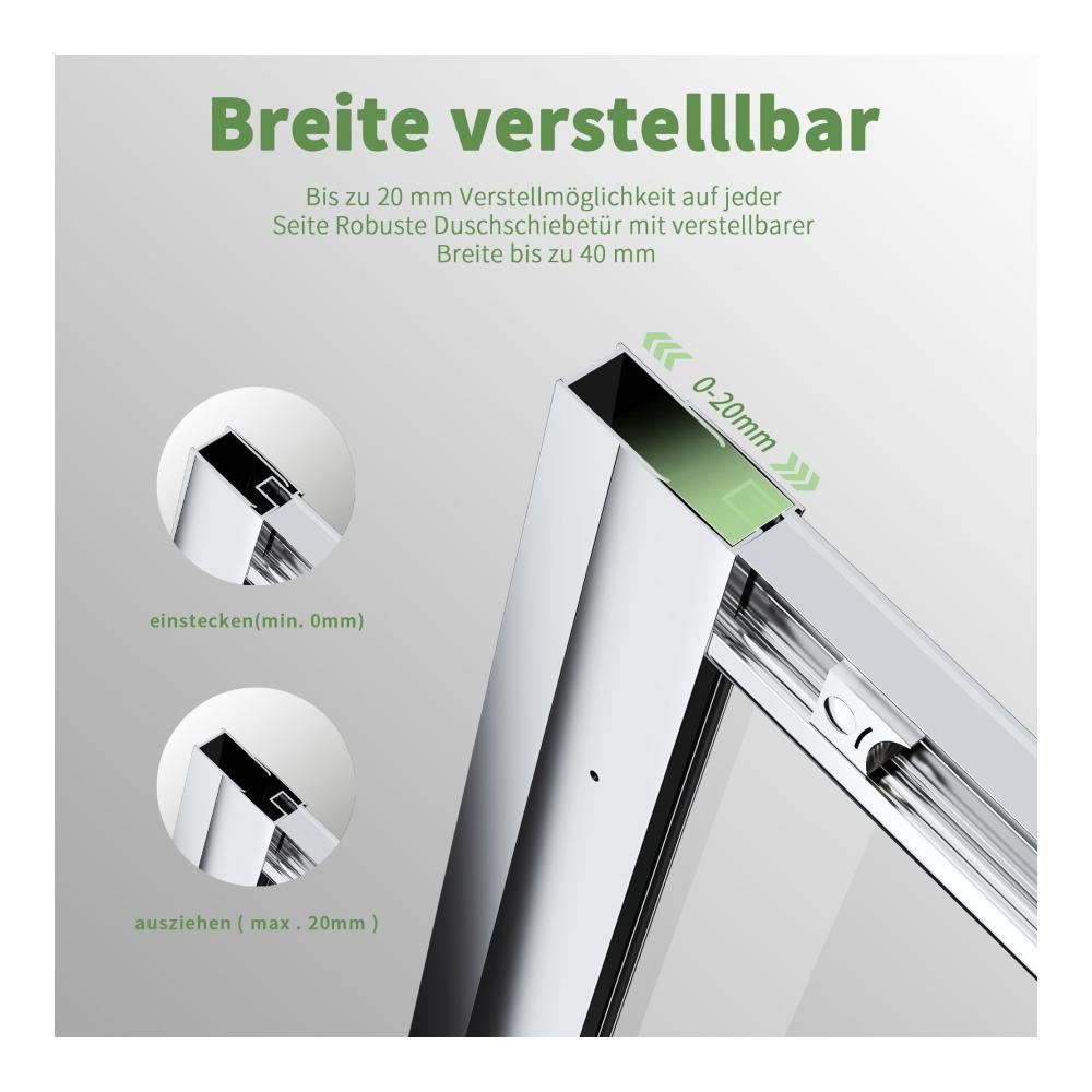 Duschkabine Schiebetür Größe: 80x80cm, (einstellbar 78-80cm/78-80cm). Höhe: 185cm, 20 mm Wandverstellung an jeder Seite. ohne Duschwanne.