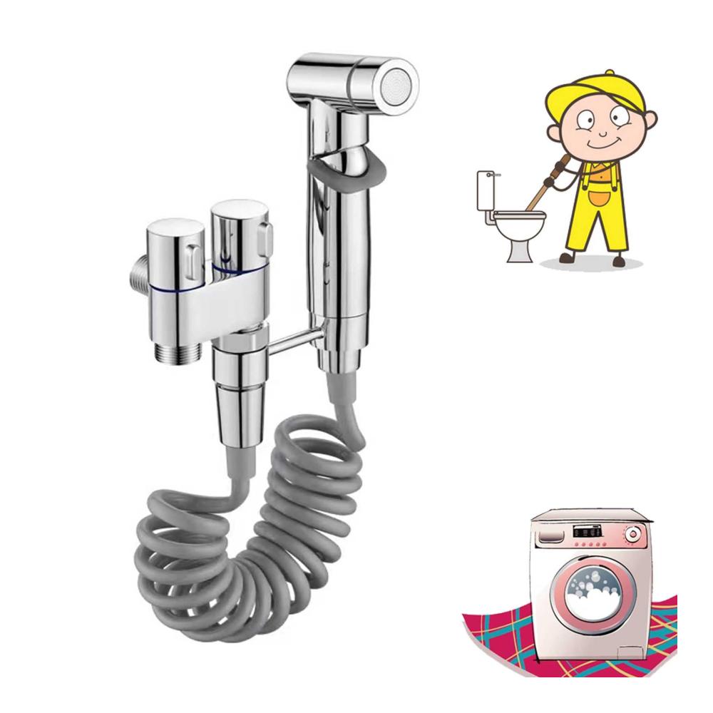 1-In-2-Out Dual Control Valve With Pull-Out Sprayer – Dual Control Valve For Bidet Dual Control Faucet Double Outlet Water Tap For Washing Machine And Toilet Faucet (Silver)