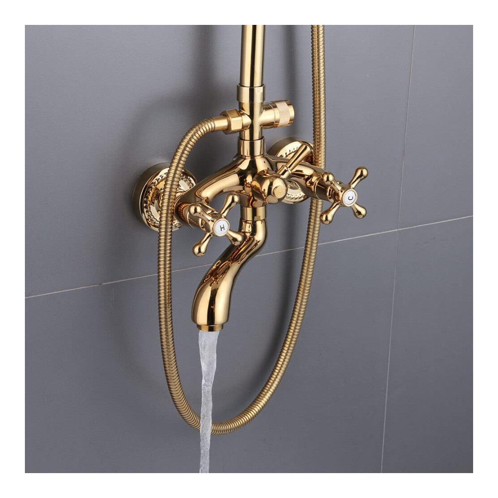 Exklusives Gold Duschsystem – Regendusche mit Retro-Charme | Duschset inkl. Duschpaneel & Armatur | Luxuriöses Duscharmaturenset für stilvolle Badewannen- & Duschsysteme