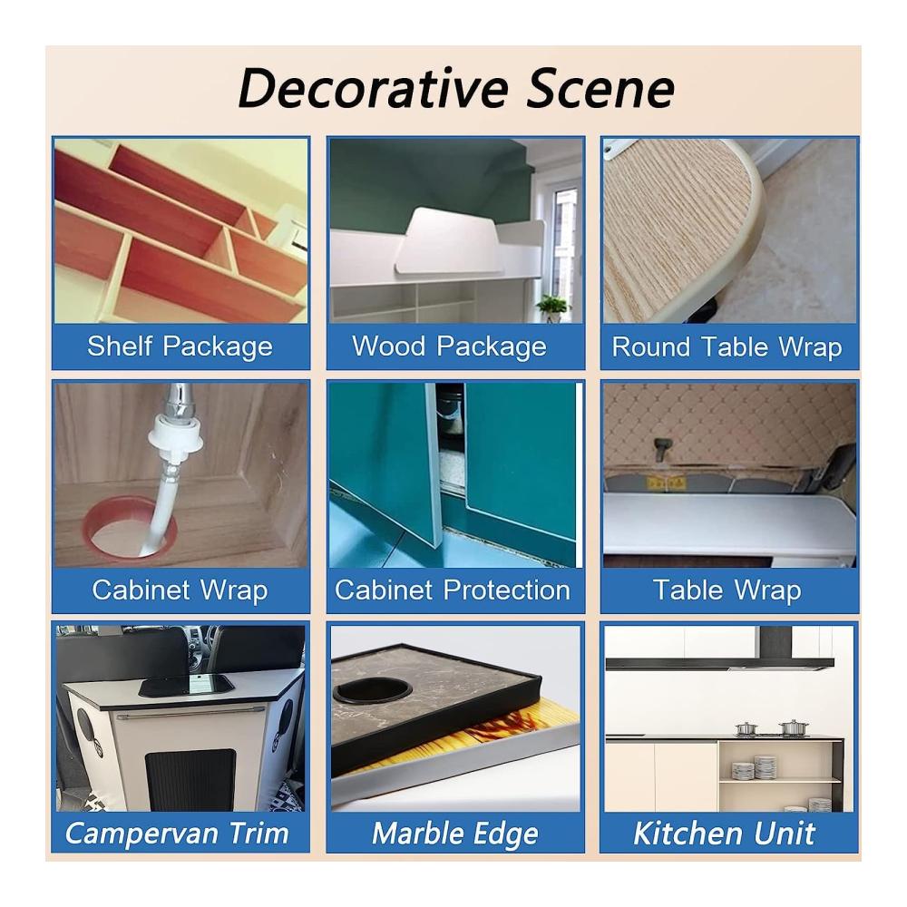 Weit verbreitet: U-förmige Möbelkantenbänder werden verwendet, um Schränke, Möbel, Sperrholz, MDF-Regale, Regale, Kücheneinheiten usw. zu reparieren oder zu aktualisieren. Perfekt für verschiedene Oberflächen wie Sperrholz, Marmor, Holz oder Hartfaserplatten