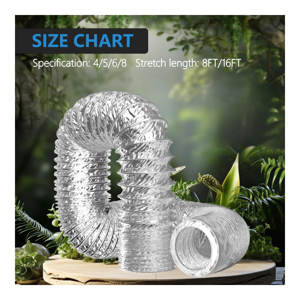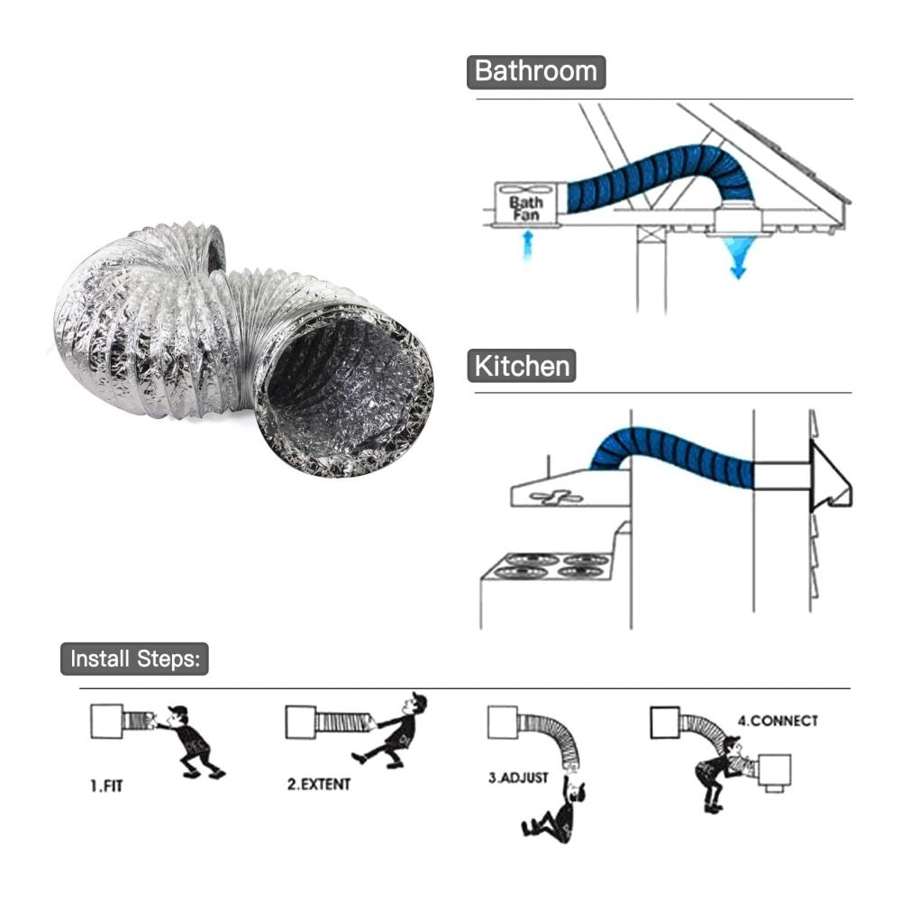 Das 5 Meter lange Flexschlauch-Aluflexschlauch-Set eignet sich perfekt für den Einsatz mit Wäschetrocknern, Abzugshauben, Rohrventilatoren und Klimaanlagen. Die hochwertige Aluminiumkonstruktion gewährleistet eine effiziente und langlebige Leistung.