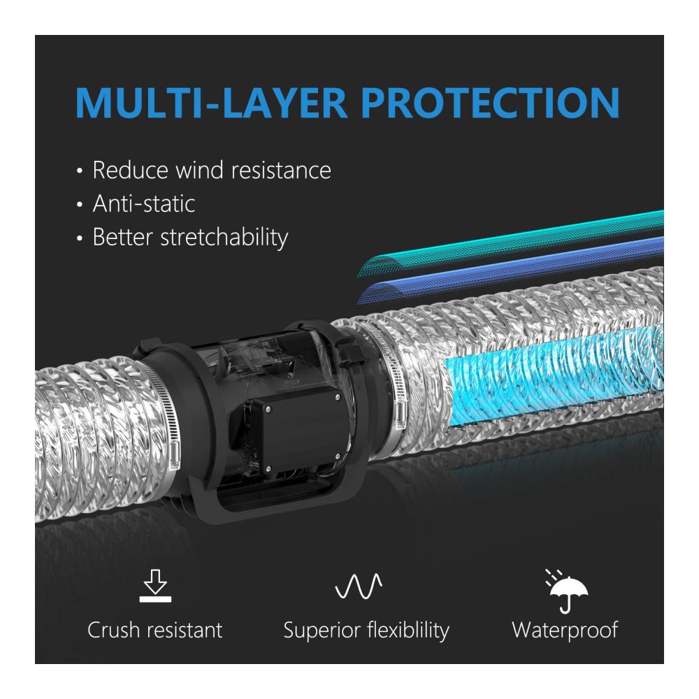 ABLUFTROHR 8 INCH DUNSTABZUGSHAUBE: Hohe Zähigkeit, kann frei gebogen werden, um verschiedene Winkel der Installation zu passen. Gestaucht auf ca. 0.5 m, voll ausgebaut ca. 5 m.