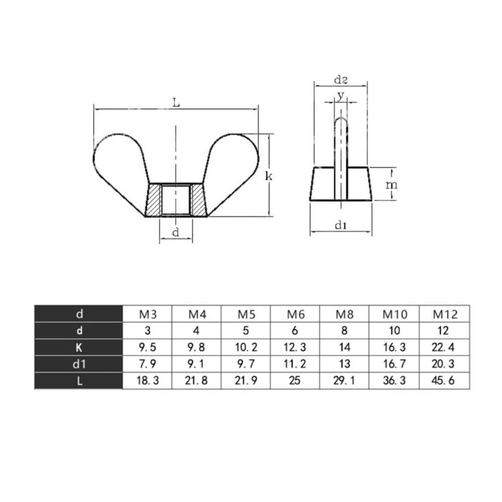 10 Stück M3 M4 M5 M6 M8 M10 M12 Schmetterlingsflügelmuttern