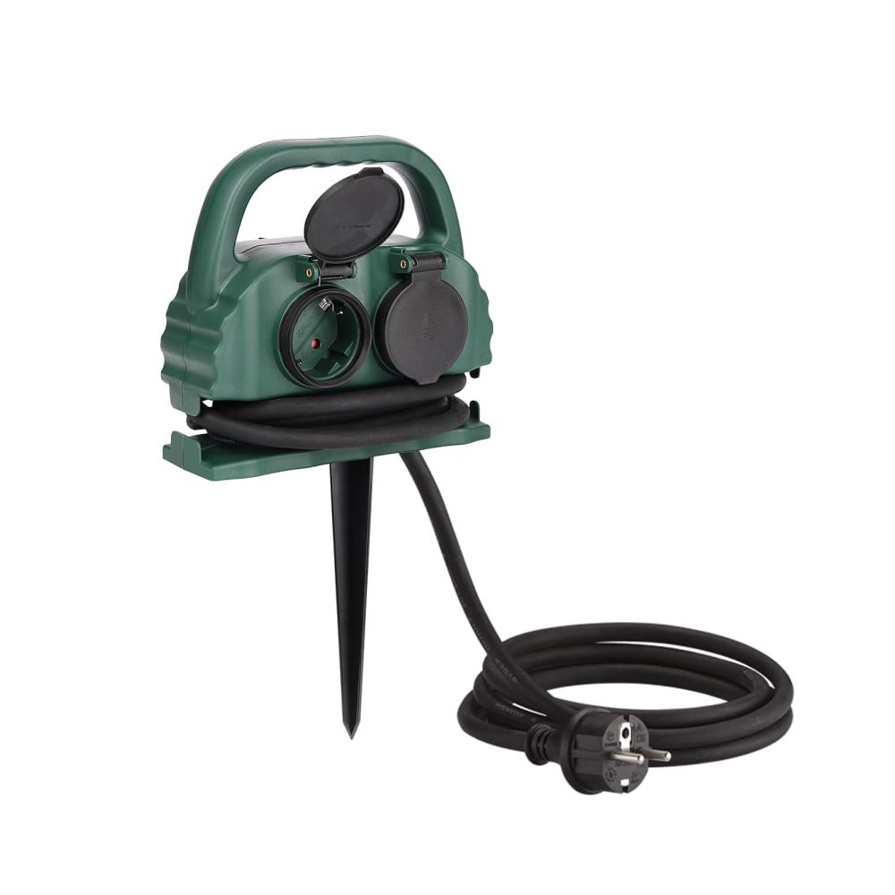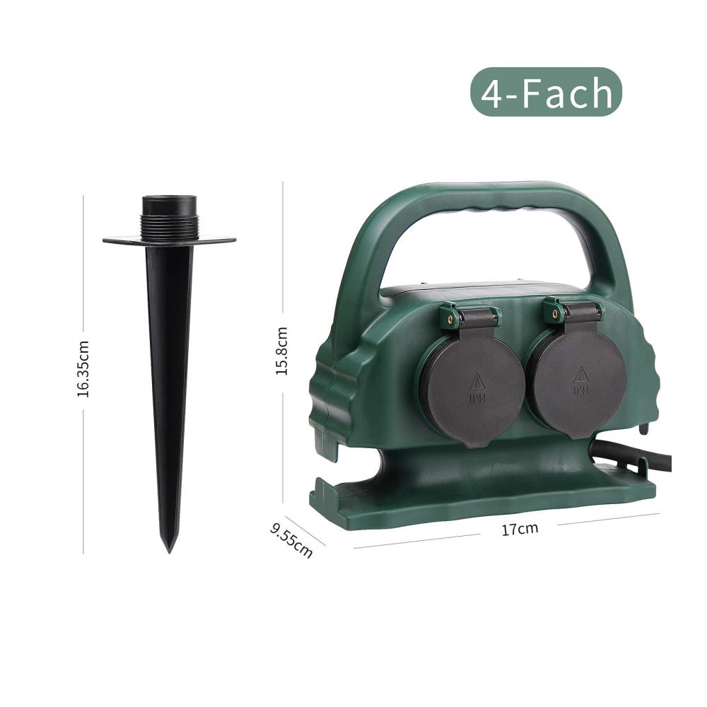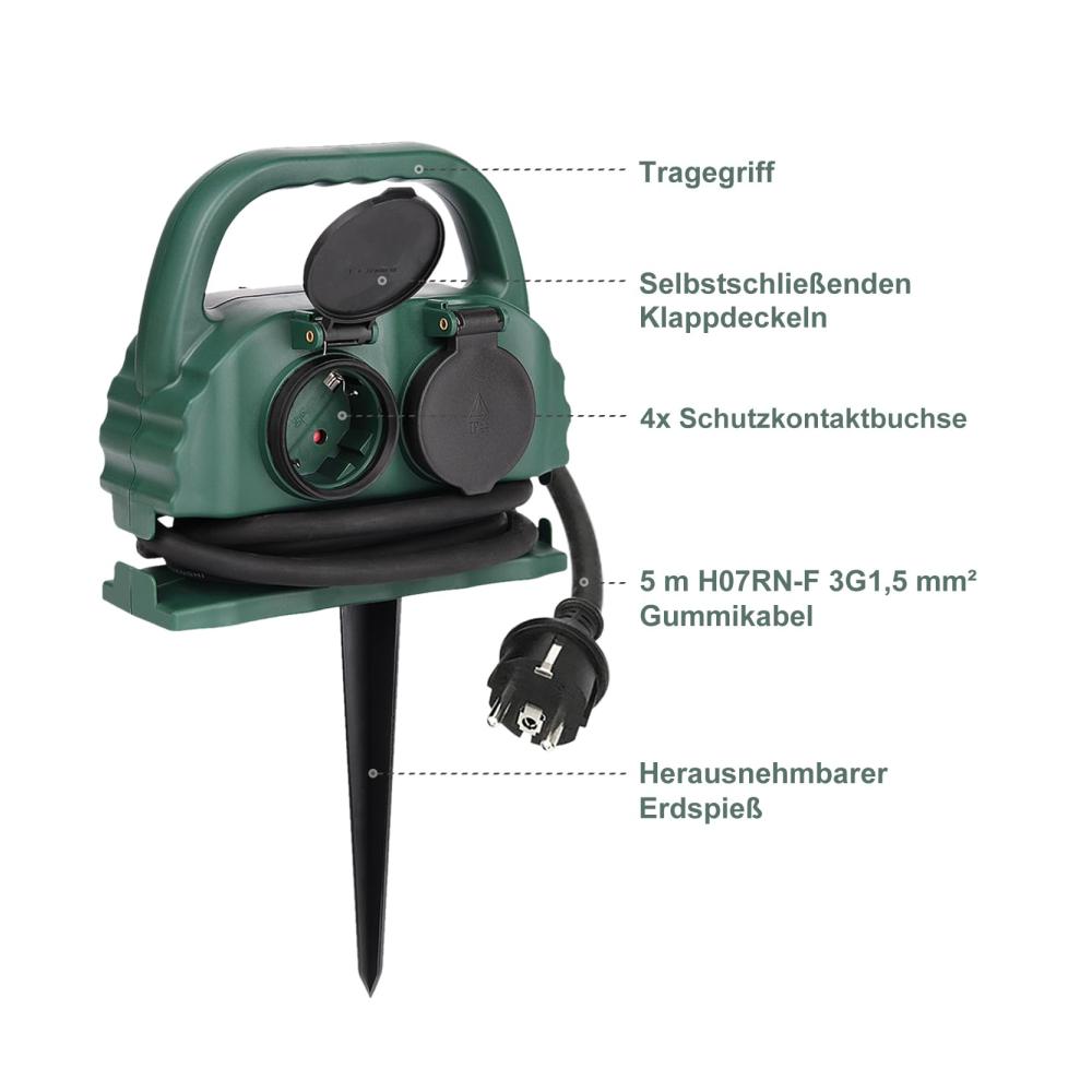 4er Garten-Steckdose mit Tragegriff und Erdspieß für den Einsatz im Freien 5m Kabellänge H07RN-F 3G1,5mm²