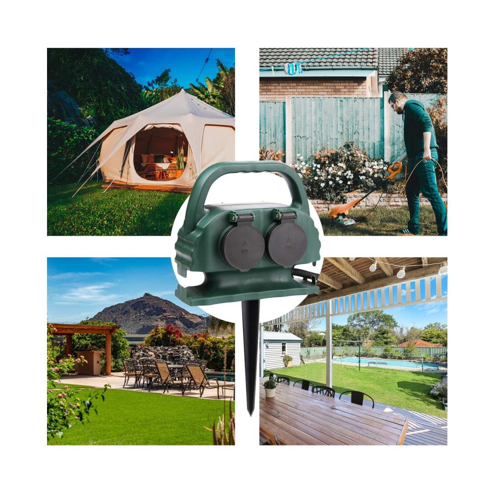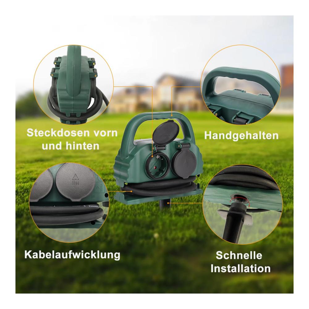 - Die tragbar Gartensteckdose kann durch den Erdspieß schnell und flexibel überall in Ihrem Garten platziert werden.