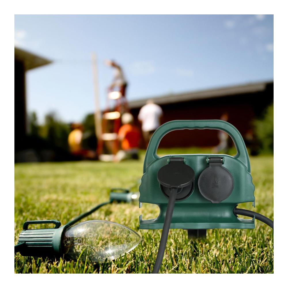 Geeignet für die Verwendung im Aussenbereich, zum Anschluss von Rasenmäher, Gartenleuchten, Lichterketten, Radio, Elektrogrill usw.