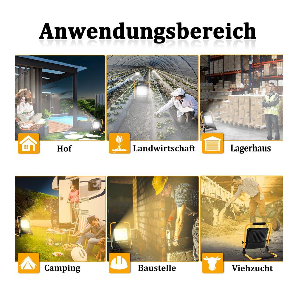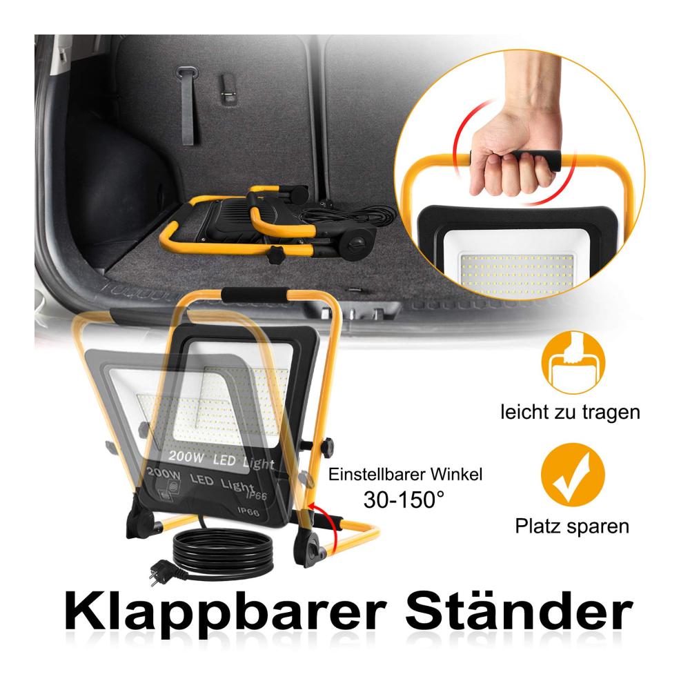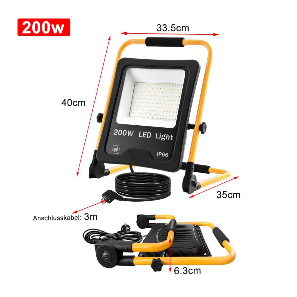 Unsere Arbeitsbeleuchtung ist speziell für Werkstätten, Gärten und Baustellen konzipiert, um Ihnen optimale Helligkeit und Sichtbarkeit zu bieten. Die beeindruckende Leistung von 200W sorgt für eine großflächige Ausleuchtung, damit Sie Ihre Aufgaben präzise und effizient erledigen können.