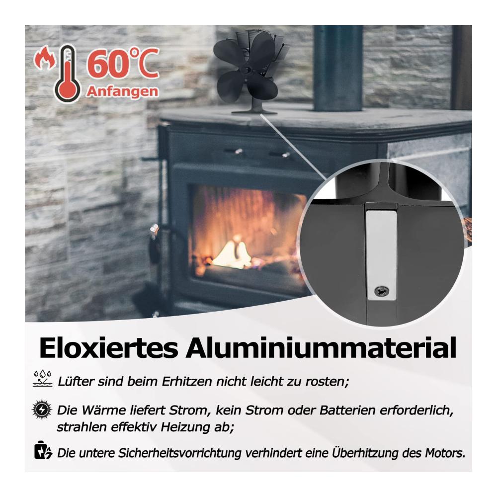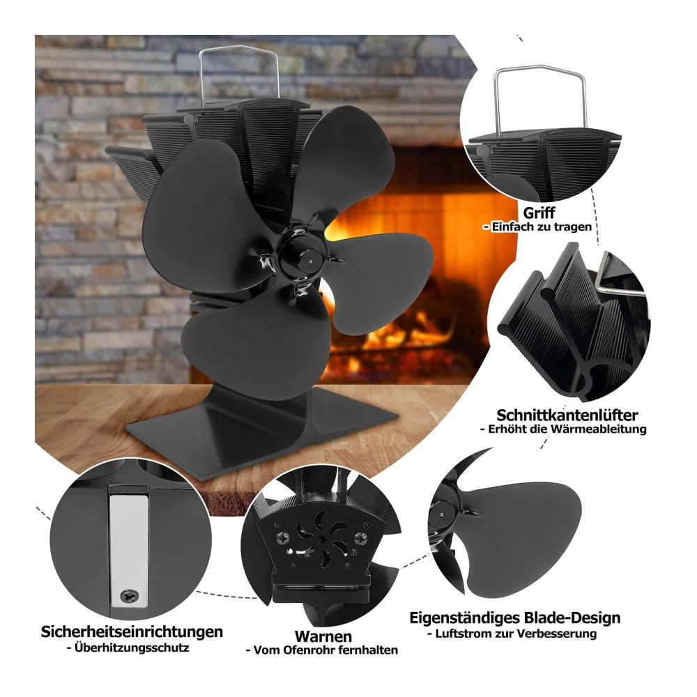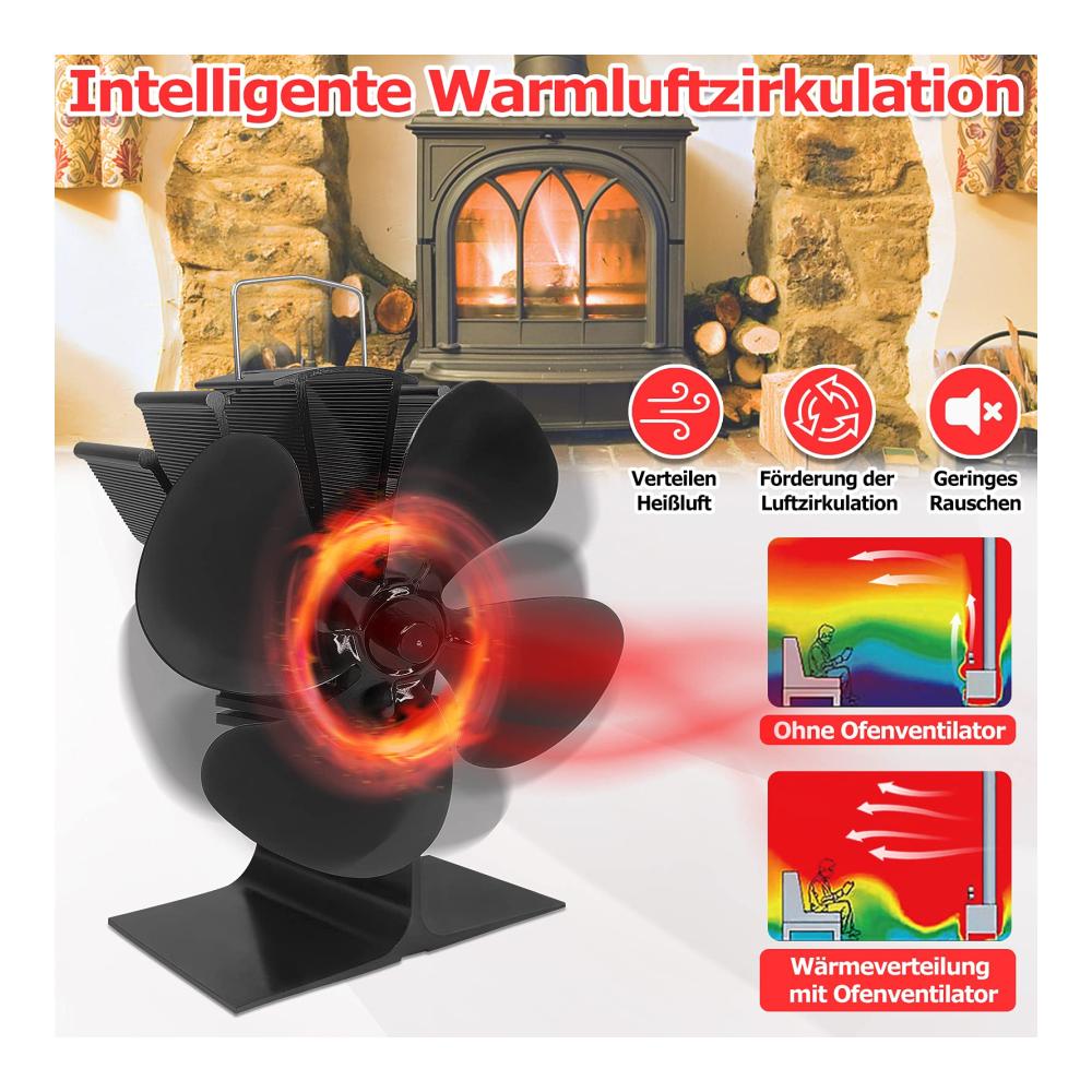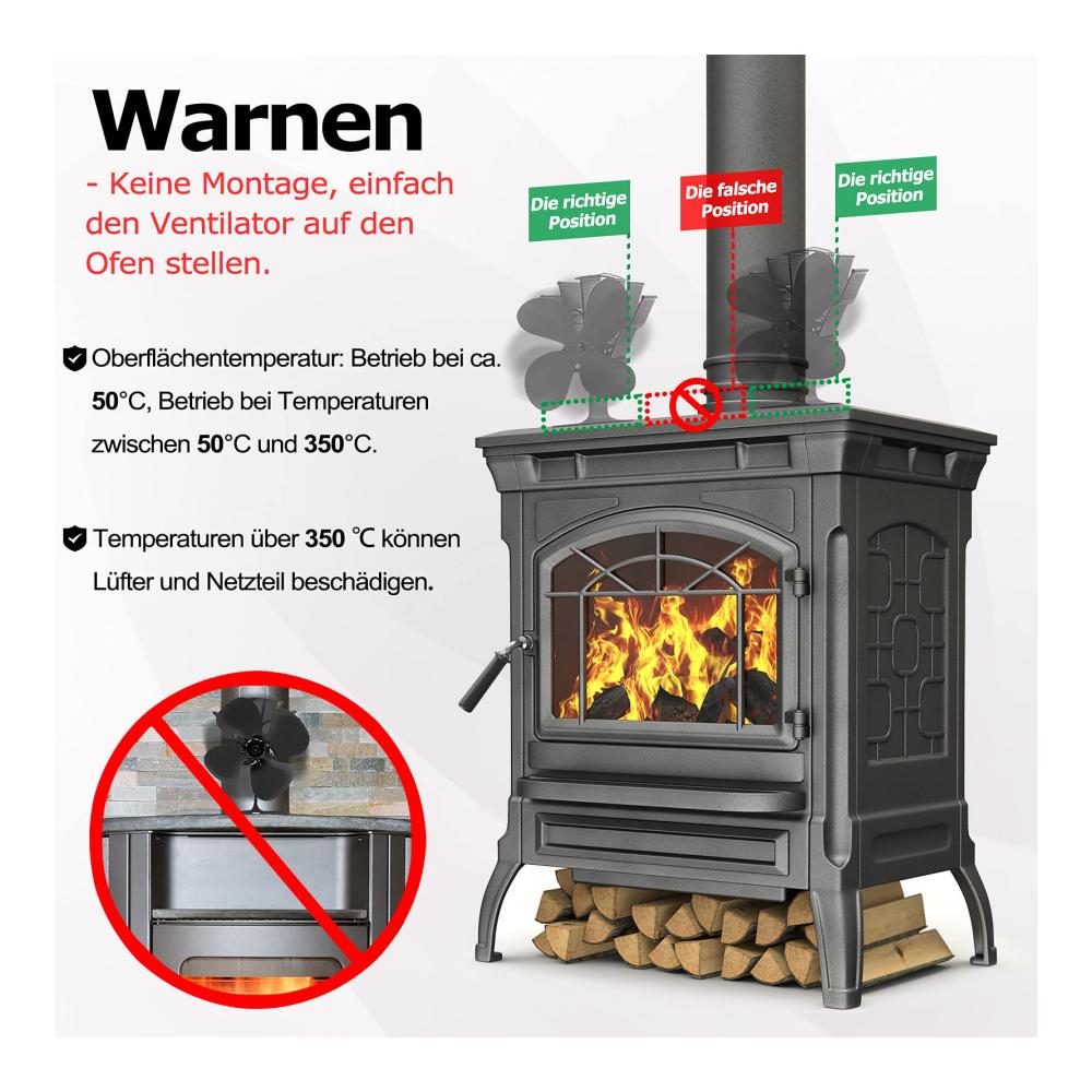- Kaminventilatoren sind langlebig und energieeffizient, benötigen weder Batterien noch Strom, verbessern die Warmluftzirkulation und reduzieren den Holzverbrauch im Ofen.
