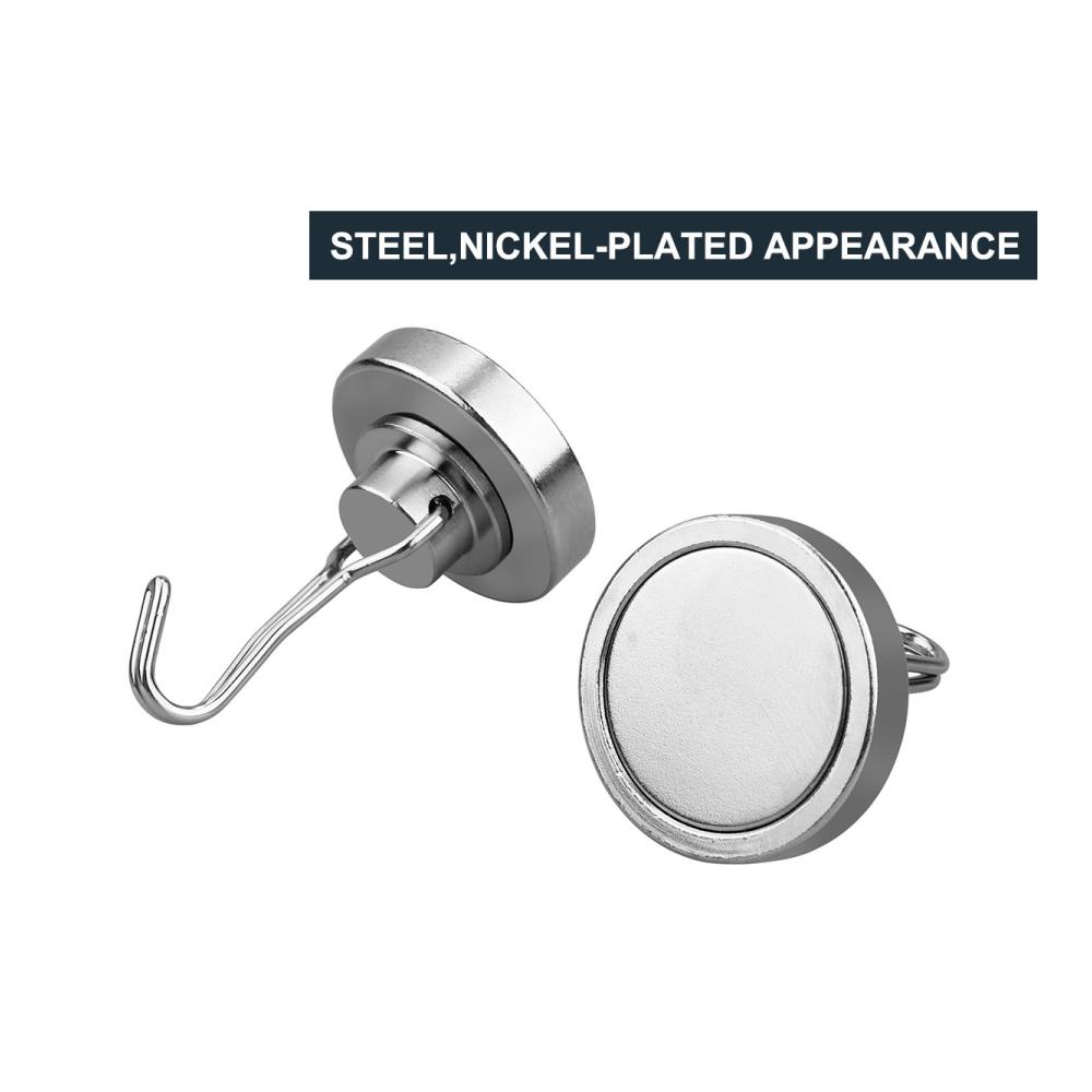 Dieser Magnethaken hat eine sehr starke Haftkraft, ohne mit der Zeit an Kraft oder Anziehungskraft zu verlieren. Der Durchmesser beträgt 32 mm und es kann ein maximales Gewicht von 25 Pfund aushalten.