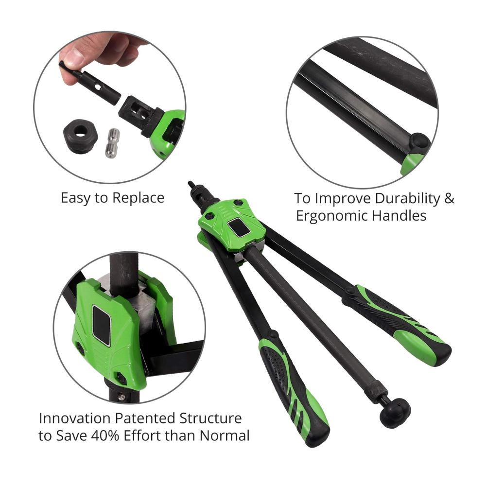 【Einzigartiges Stange-Design】Die Push/ Pull &34;Pumpstange&34; zwischen dem Griff erleichtert das Be- und Entladen der Gewindenietmuttern. Anstatt die Nietmuttern von Hand zu drehen, Sie können die Nietmuttern durch Drücken der Stange beladen und durch Ziehen an der Stange schneller und einfacher entladen.