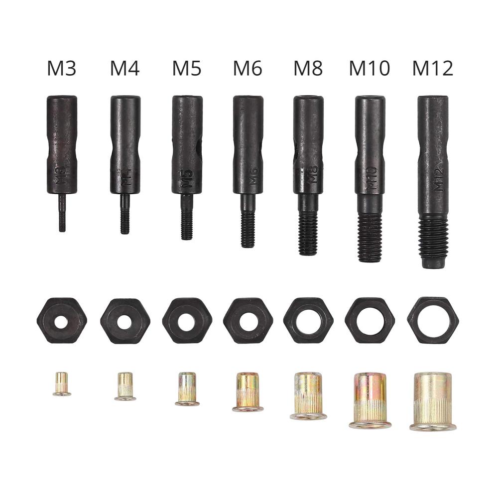 【165 Stück Nietmuttern】 165 Stück Nietmuttern mit 7 mehreren Spezifikationen wie folgt: M3 — 55 Stück; M4 — 40 Stück ; M5 — 30 Stück; M6 — 20 Stück ; M8 — 10 Stück ; M10 — 5 Stück ; M12 — 5 Stück
