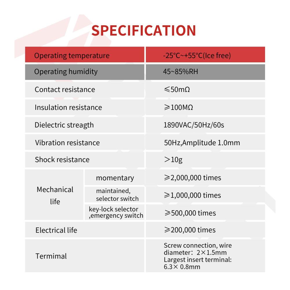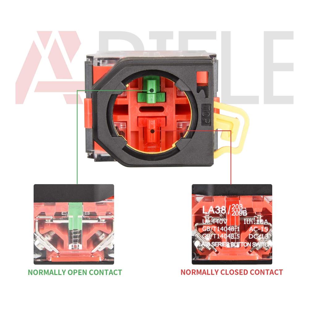 1NO 1NC Silberkontakt; Aktion: Momentan, drücken, dann zurückdrehen; Installationsgröße: 22mm