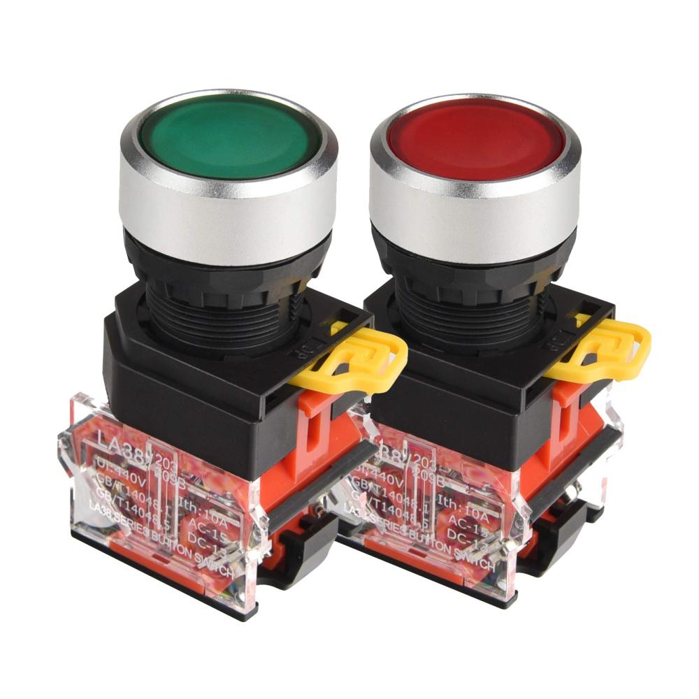 22MM Momentan Druckknopfschalter Grün und Rot Rund Flachknopf DPST 1NO 1NC Metallkopf LA36A-11BN 2 PCS (grün rot)