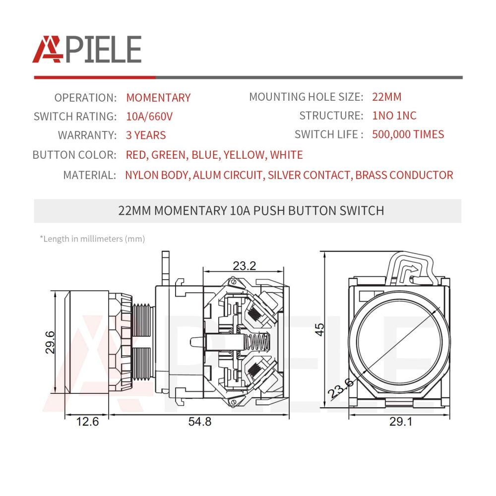 Der Schalter ist einfach zu bedienen und gewährleistet durch seinen Momentan-Betrieb eine schnelle Reaktion. Die grüne und rote Farbgebung erleichtert die Unterscheidung und gibt Ihnen klare visuelle Signale.