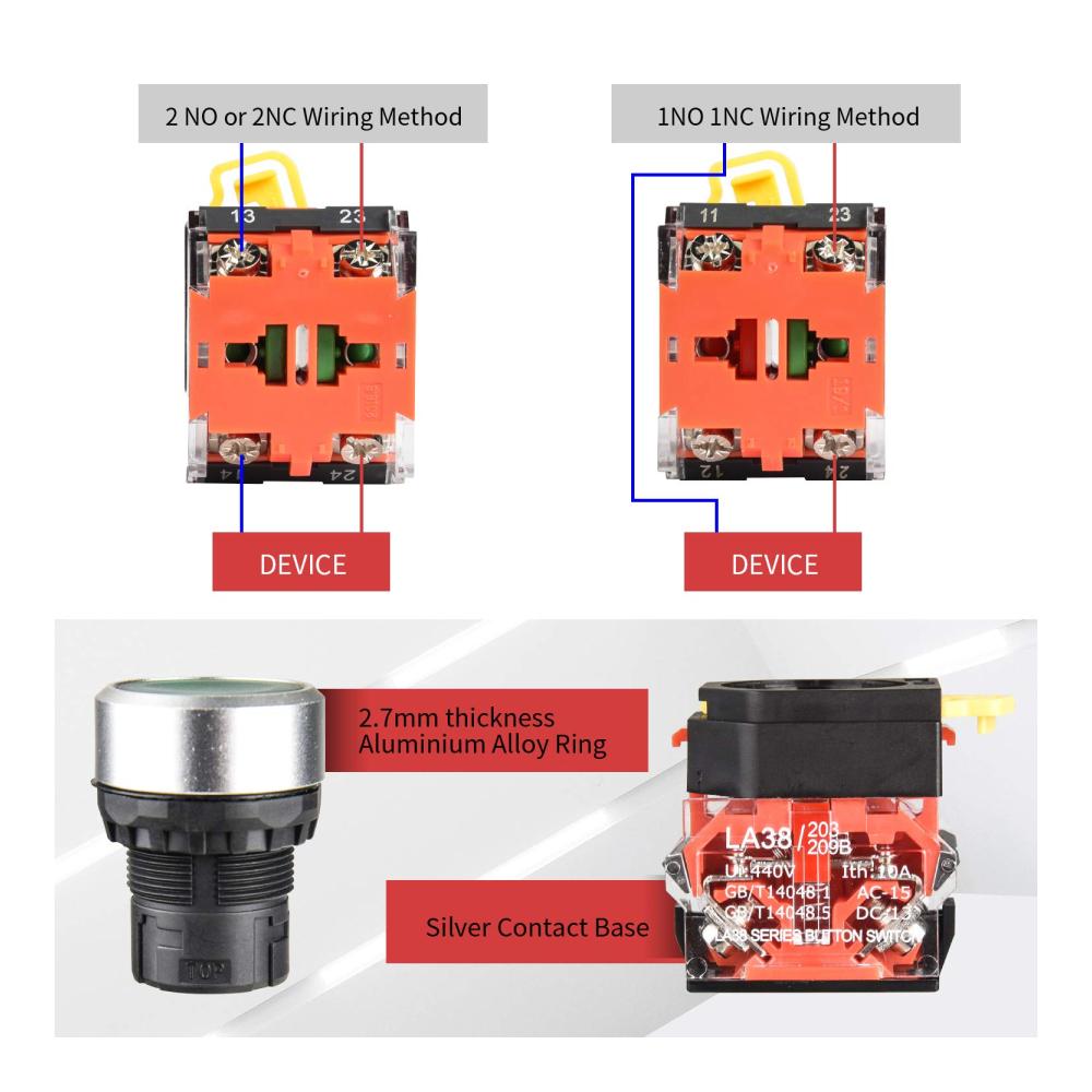 Der DPST (Doppel-Pol, Einzelschalter) Schalter verfügt über 1 Normally Open (NO) und 1 Normally Closed (NC) Schaltkreis, was Ihnen maximale Flexibilität bei der Anwendung ermöglicht. Ob in der Industrie, im Haushalt oder in anderen Anwendungen, dieser Druckknopfschalter erfüllt höchste Ansprüche.