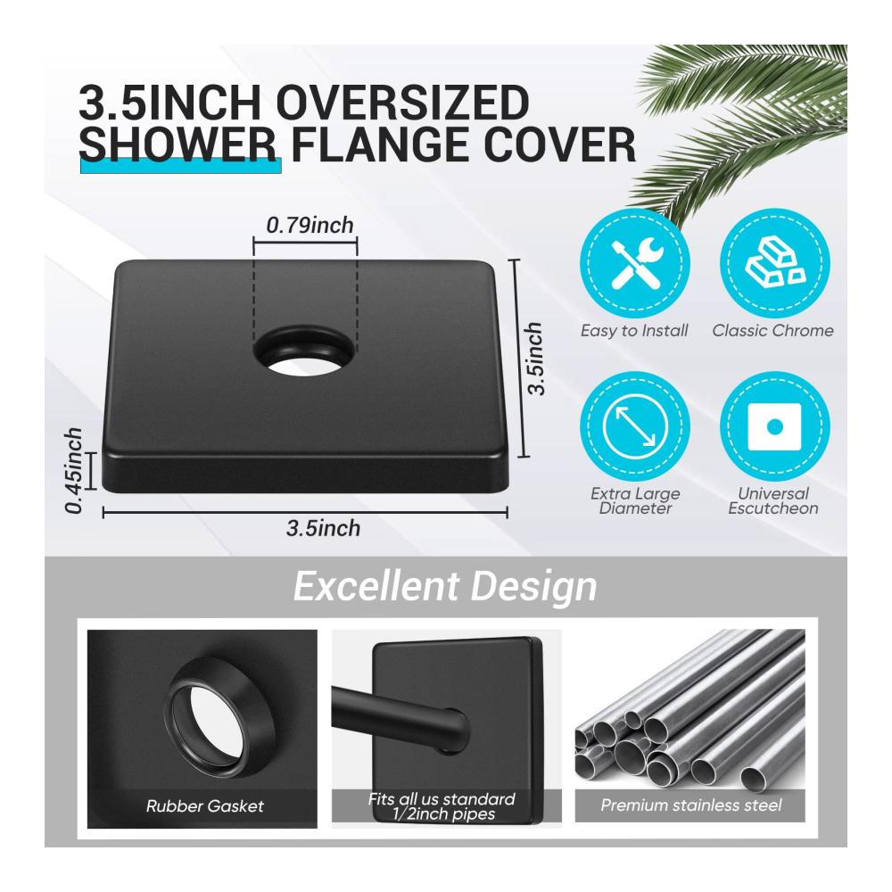 Unser 8,9 cm großer Duscharm Flansch in quadratischer Form präsentiert sich in elegantem Mattschwarz, um Ihrem Badezimmer einen modernen und stilvollen Akzent zu verleihen. Diese Sanitärabdeckung Platten sind die ideale Lösung, um Lücken und Löcher zuverlässig zu verdecken und gleichzeitig eine universelle Ersatz Rosette für alle Standard-Einbauduschköpfe zu bieten.