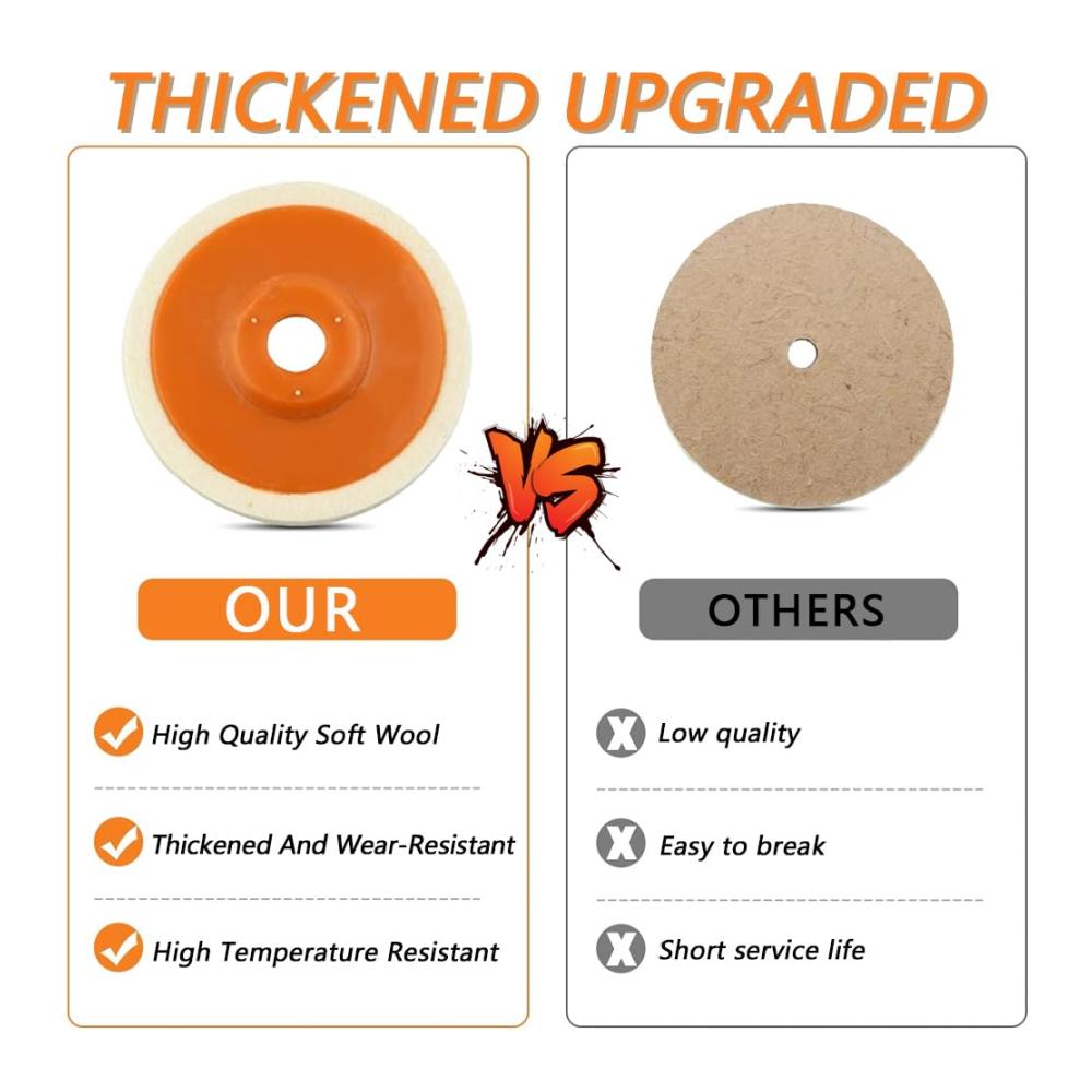 【Leistungsstarke Funktion】Winkelschleifer Wolle Schwabbelscheibe Polierwirkung ist glatt und glänzend, hohe Oberflächengüte, ist es am besten mit Politur zu verwenden, um hohe Finish in verschiedenen Formen zu erreichen.