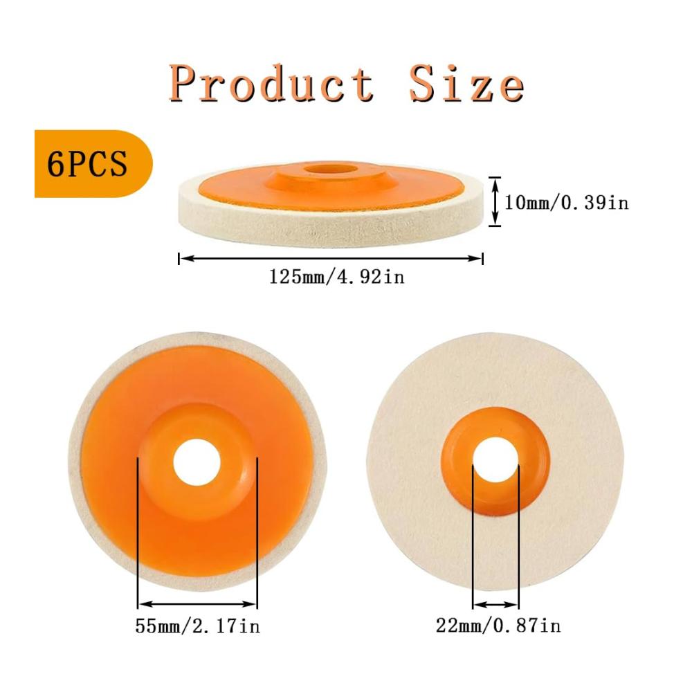 6pcs * Wolle Polieraufsatz Winkelschleifer 125mm