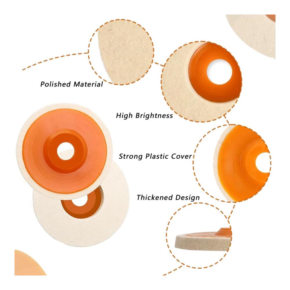 【Sicher und Fest】Die Kunststoffabdeckung des Wolle Polierscheibe 125mm ist fest mit der Schleifscheibe durch einen starken Klebstoff verbunden, der nicht leicht abfallen kann und Ihnen ein größeres Gefühl der Sicherheit gibt.