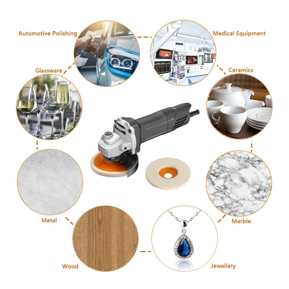 【Weit Verbreitet】Polieraufsatz Winkelschleifer 125mm sind weit verbreitet für das Polieren von Metall, Holz, Stein, Glas, Marmor, Keramik, Edelstahl, Geschirr, Präzisionsinstrumente und andere Arten von Werkstücken für die Feinpolitur.