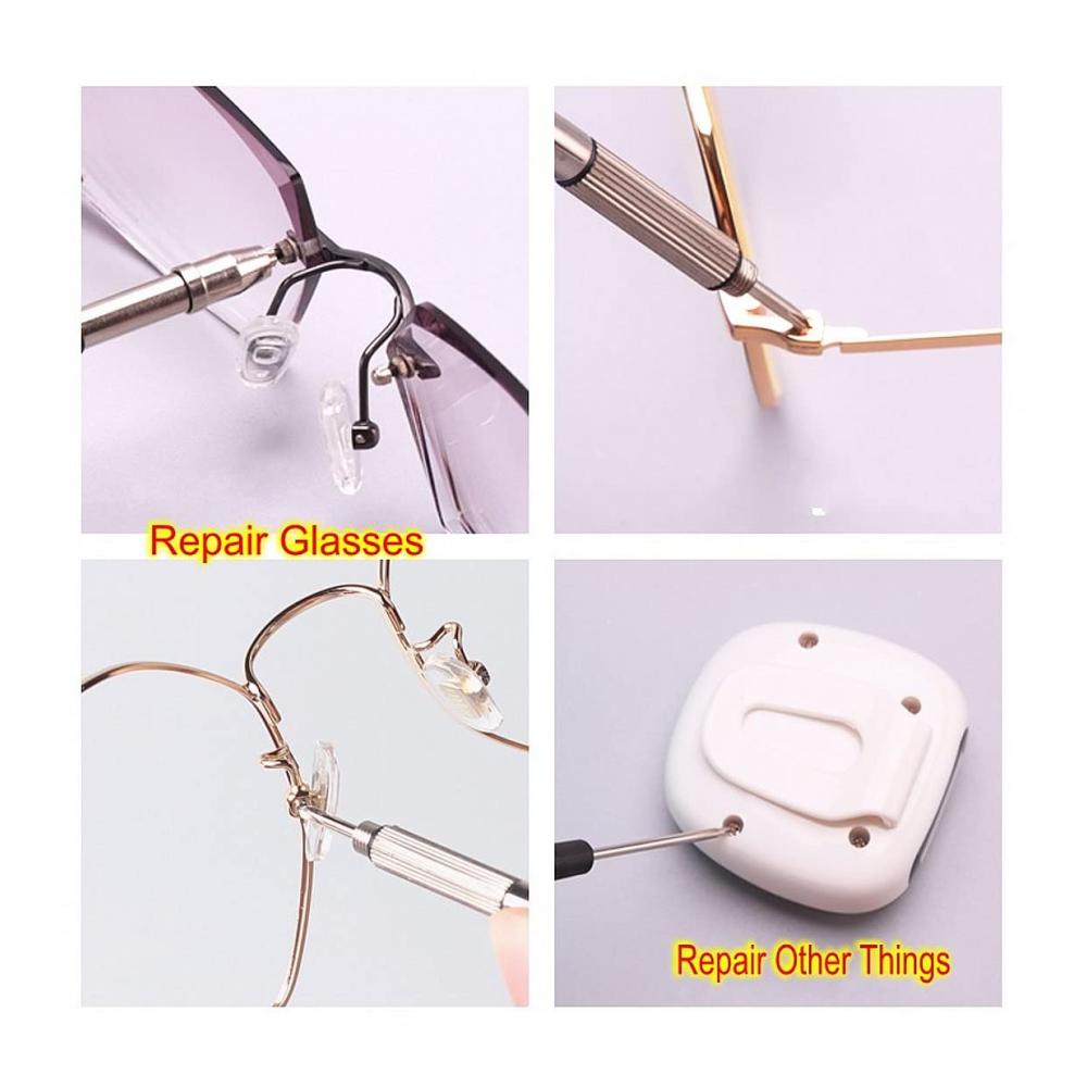 Dieses Brillenreparaturset eignet sich für Sonnenbrillen, randlose Brillen, halbrunde Brillen und Rahmenbrillen. Das Brillenreparatur-Werkzeugset ist komplett, und Sie können die Brille einfach selbst fixieren.