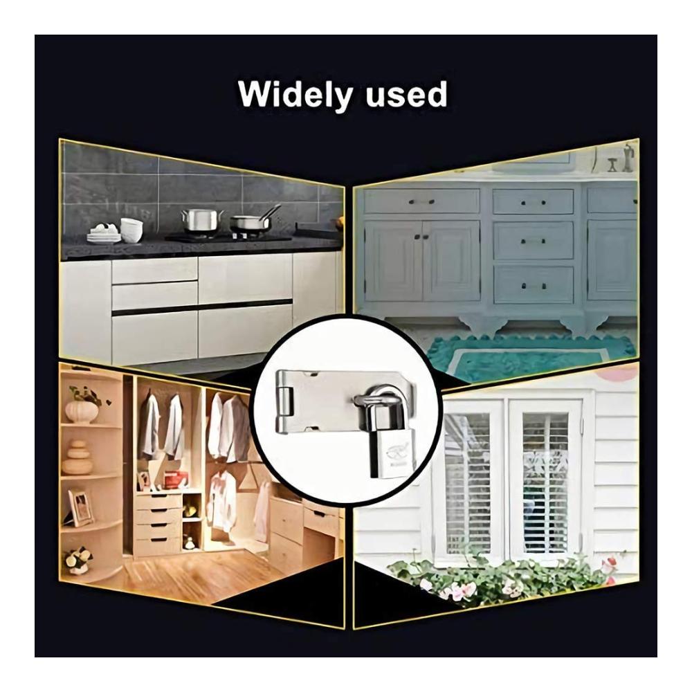 Weit Verbreitet Anwendungen:Perfekt für eine vielzahl von türen,schränken,fenstern,schuppen,schubladen,schließfächern,haustiertoren,werkzeugkästen und vielem mehr.mit ihrem kompakten design und ihrer soliden konstruktion sind diese türschloss hasp eine schöne ergänzung für die sicherheit ihres zuhauses und ihrer privaten möbel.