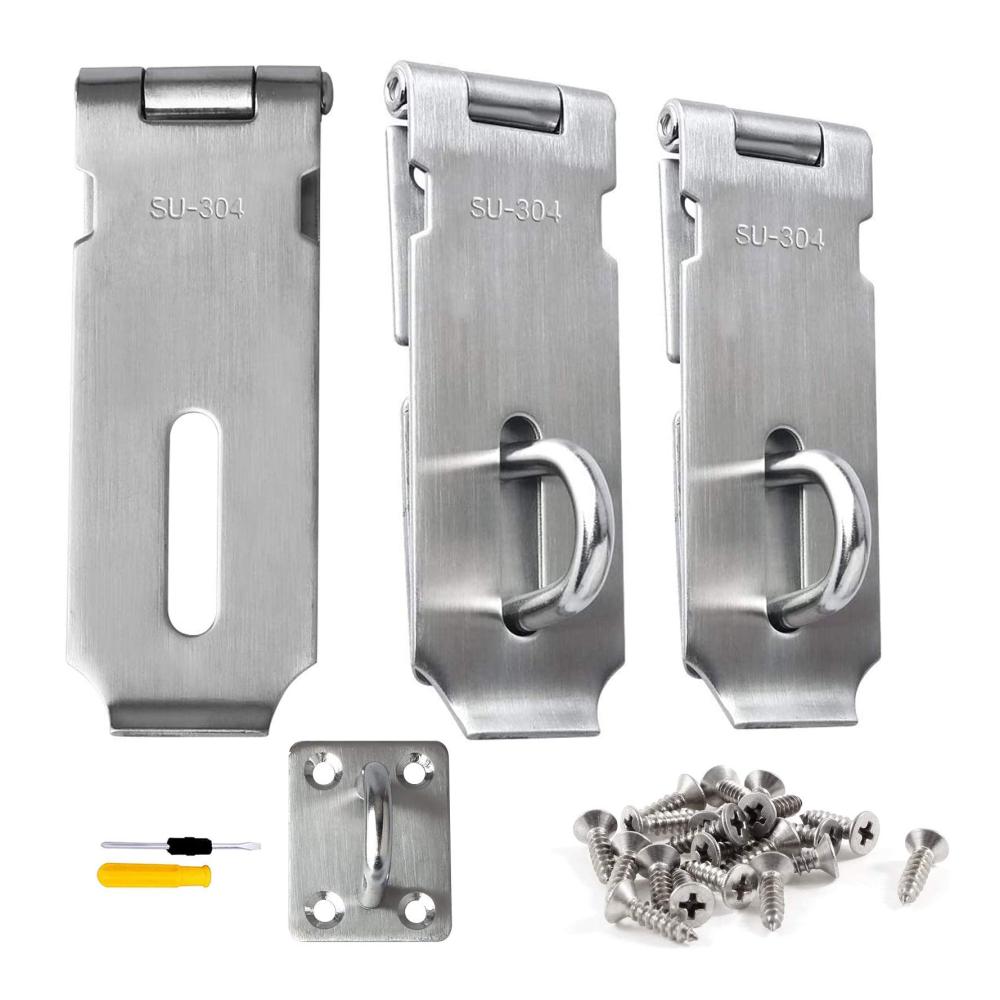 XianzhanEU 3 PCS Edelstahl Haspe Sicherheits Überfalle Vorrichtung für Tür Fenster Schrank Haustierkäfig Kisten mit 27 × Universalschrauben 1 × Schraubendreher