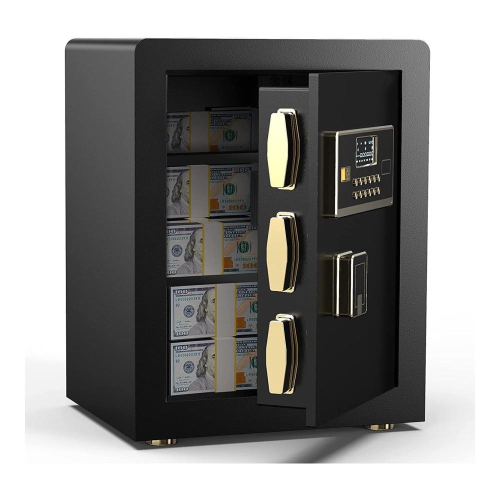 [Feuerfester und wasserdichter Safe] Verwenden Sie unseren feuerfesten Safe, um Ihr wertvollstes Eigentum und Ihre elektronischen Produkte zu schützen.Dies ist eine ideale Lösung, um Ihre Wertsachen vor Feuer und Diebstahl zu schützen.Der feuerfeste Tresor verfügt über ein digitales Kombinationsschloss mit zwei Schlüsseln und Spionageschutz oder ein programmierbares digitales Schloss, um ein hohes Maß an Sicherheit zu bieten.Der Safe hat eine Brandschutzklasse von 1 Stunde,