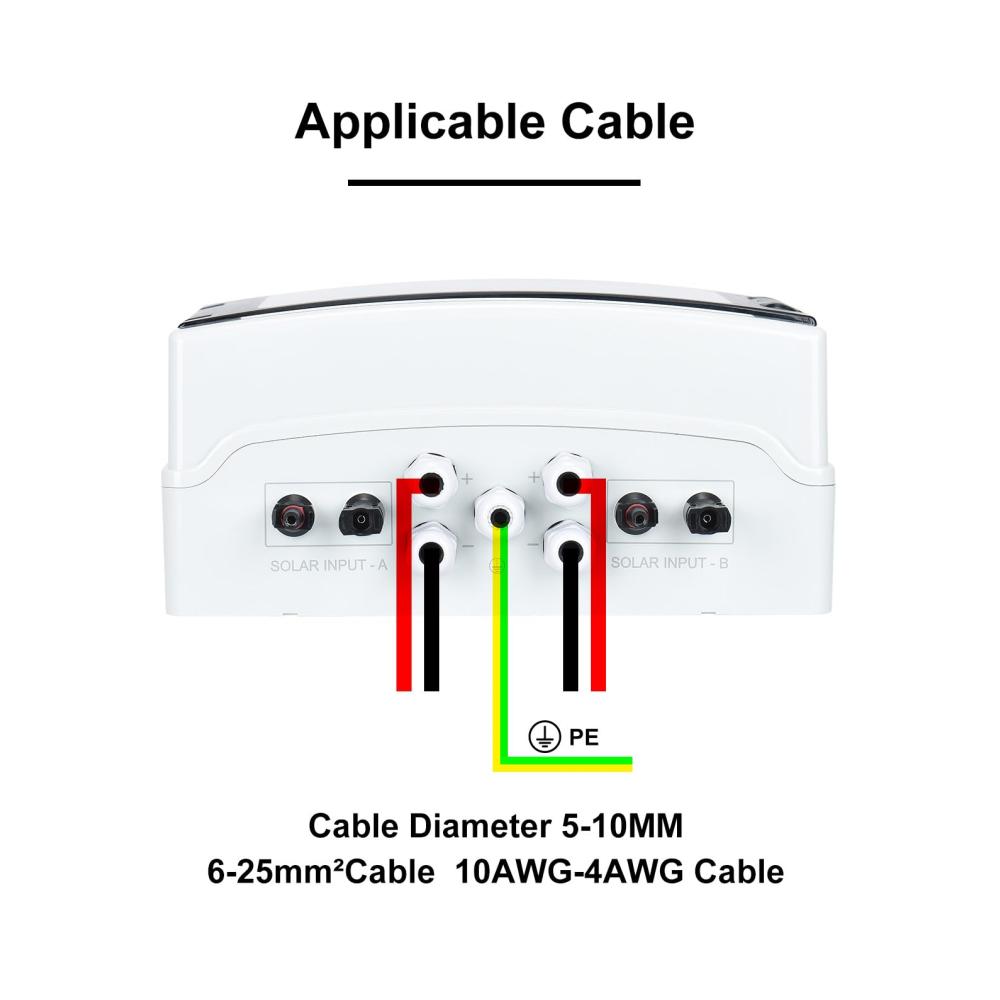 Zwei Verdrahtungsmethoden:Type A:solarstecker für schnellere und sicherere Verbindung mit Solarmodulen, Plug-and-Play für schnellere und sicherere Verbindung mit Solarmodulen, Plug-and-Play;Type B:Direkte Verdrahtung durch wasserdichte Steckverbinder und Klemmen