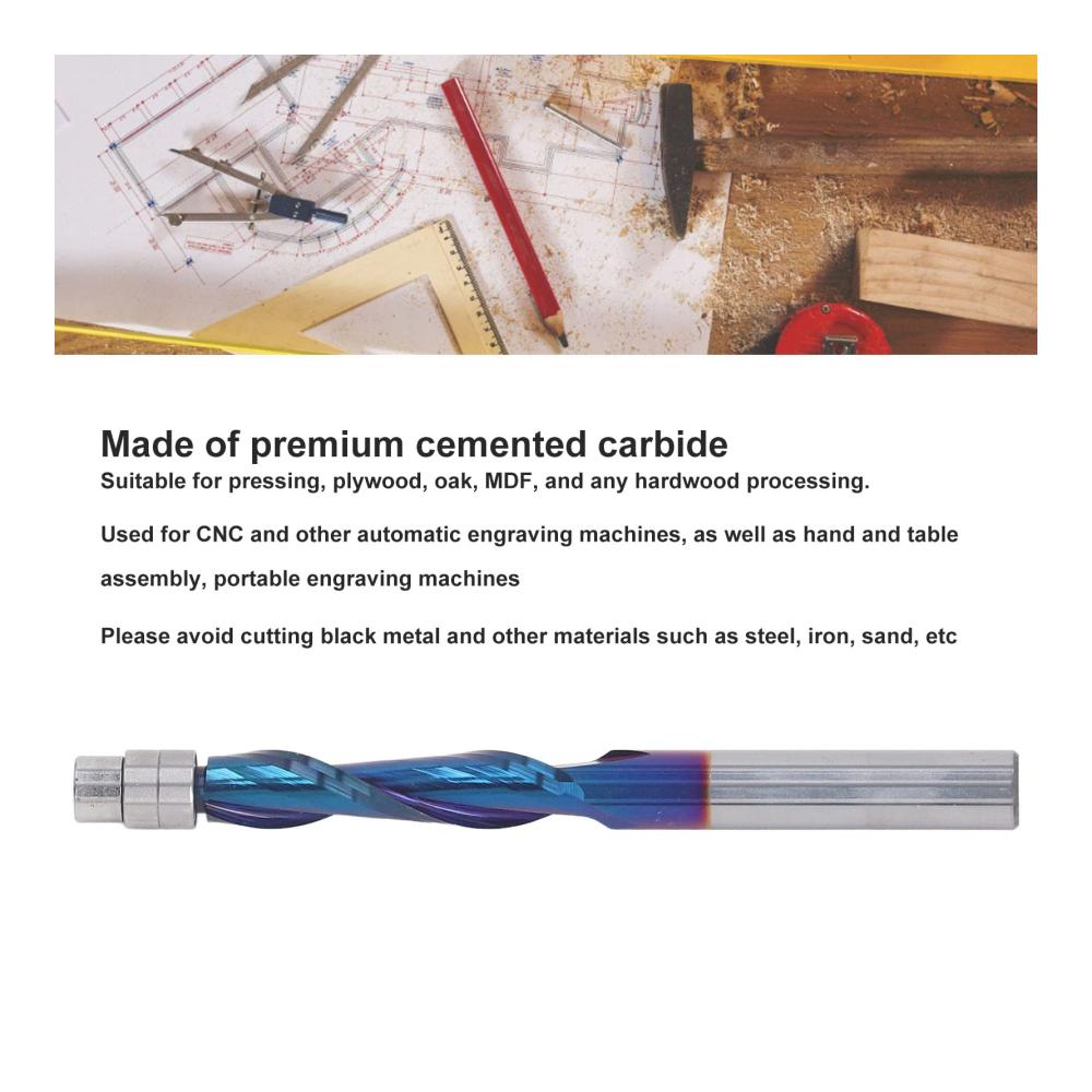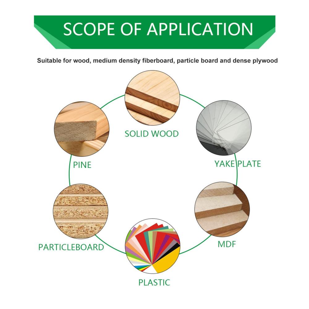 ANWENDBARE MATERIALIEN: Dieser Fräser eignet sich für Holz, mitteldichte Faserplatten, Spanplatten und dichtes Sperrholz; Bitte vermeiden Sie das Schneiden von schwarzem Metall und anderen Materialien wie Stahl, Eisen, Sand usw