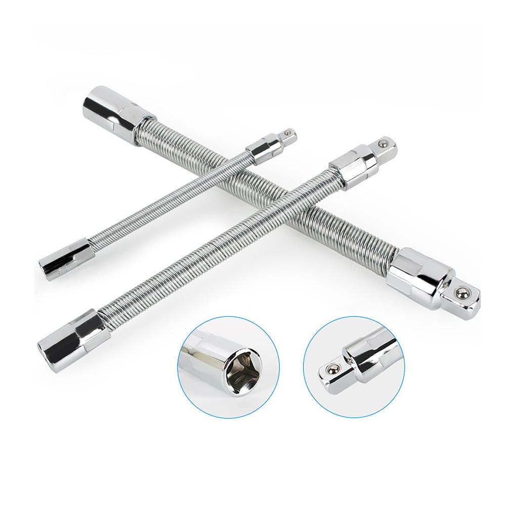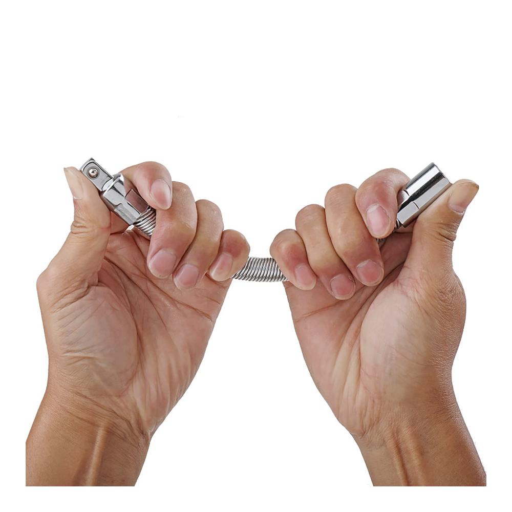 Die flexiblen Verlängerungsstangen sind mit einem 1/2 Zoll, 1/4 Zoll und 3/8 Zoll Drehschlüssel kompatibel, was sie zu einem vielseitigen Werkzeugset macht. Die Federmechanismen sorgen für eine einfache Handhabung und gewährleisten gleichzeitig eine sichere Befestigung Ihrer Stecknüsse.