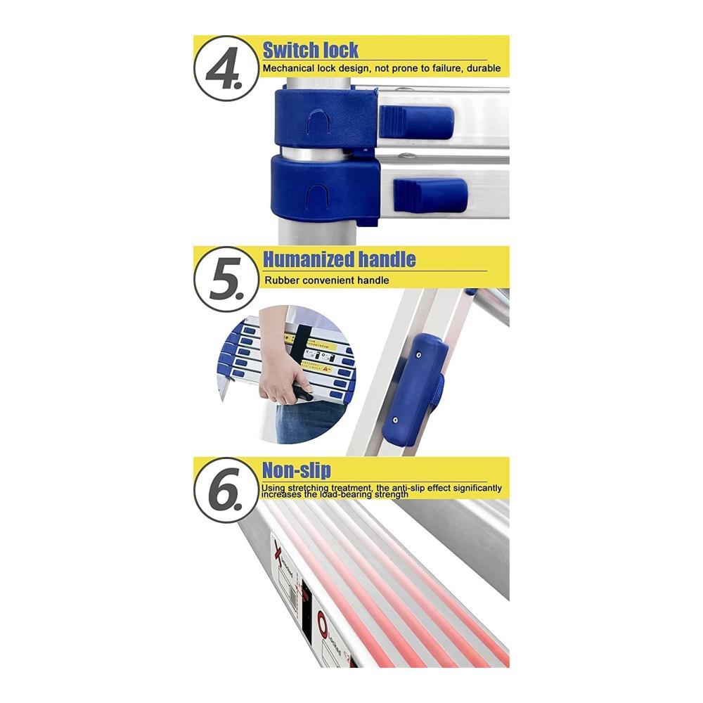 – Multi-Zweck —> Benutzer können hohe Orte erreichen. Perfekt für Haushaltsarbeiten und Outdoor-Aktivitäten, Fensterreinigung, Gartenarbeit, Zugangsdach und vieles mehr.