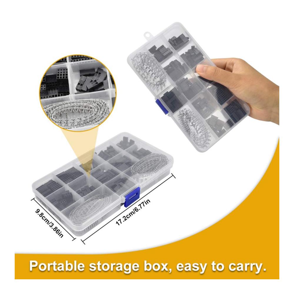 Pakcage enthalten: insgesamt 620Stk Dupont Stecker: 200 Stück weibliche Dupont Stecker, 200 Stück männlicheDupont Stecker, 10 Stk. 2x6p, 10 Stk. 2x5p, 10 Stk. 2x4p, 10 Stk. 2x3p, 10 Stk. 2x2p, 20 Stk. 1x6p, 20 Stk. 1x5p, 20 Stk. 1x4p, 20 Stk. 1x3p, 40 Stk. 1x2p, 50 Stk. 1x1p