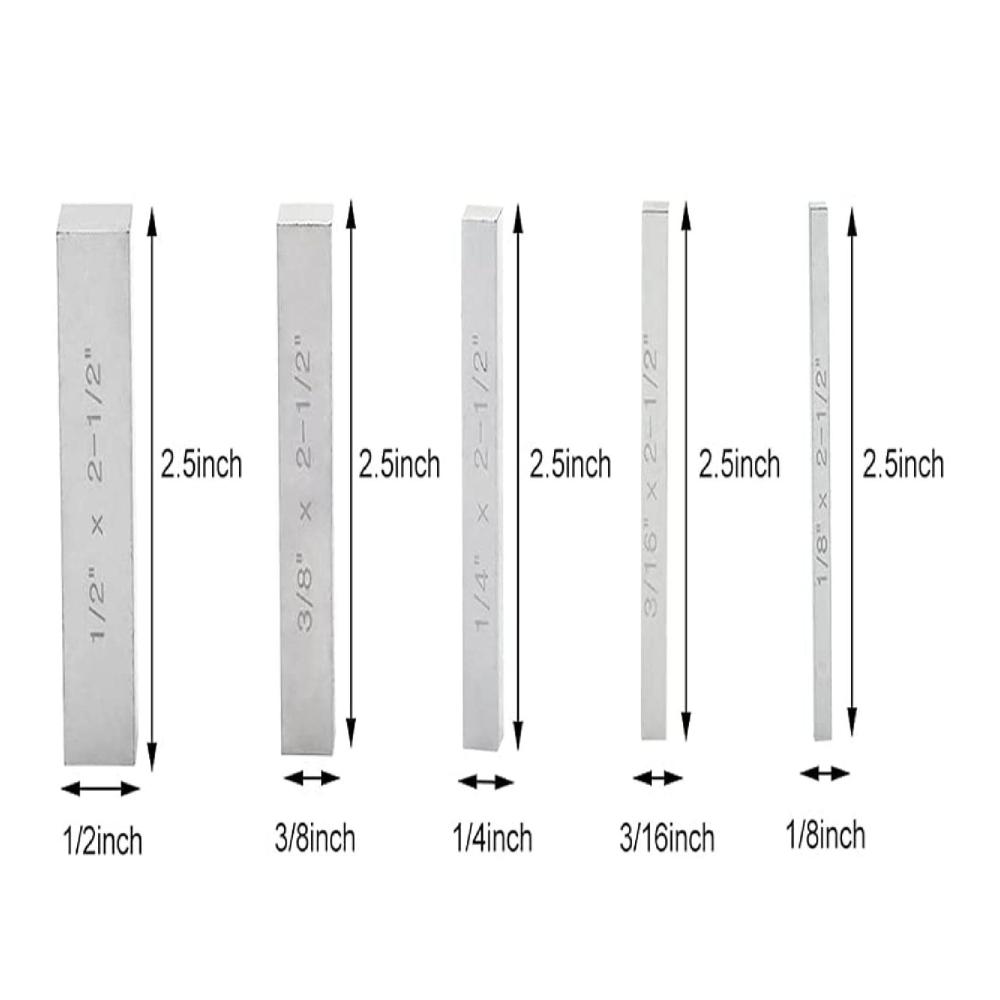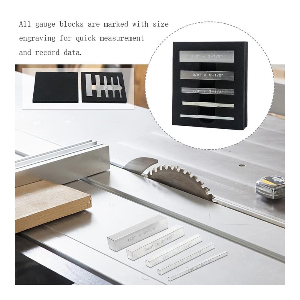 【Dimension】 Das Höhenmesswerkzeugset enthält fünf Endmaße, die Abmessungen sind: 1/2 &34;* 2,5&34;, 3/8 &34;* 2,5&34;, 1/4 &34;* 2,5&34;, 3/16 &34;* 2,5&34;, 1 /8 &34;* 2,5&34;.