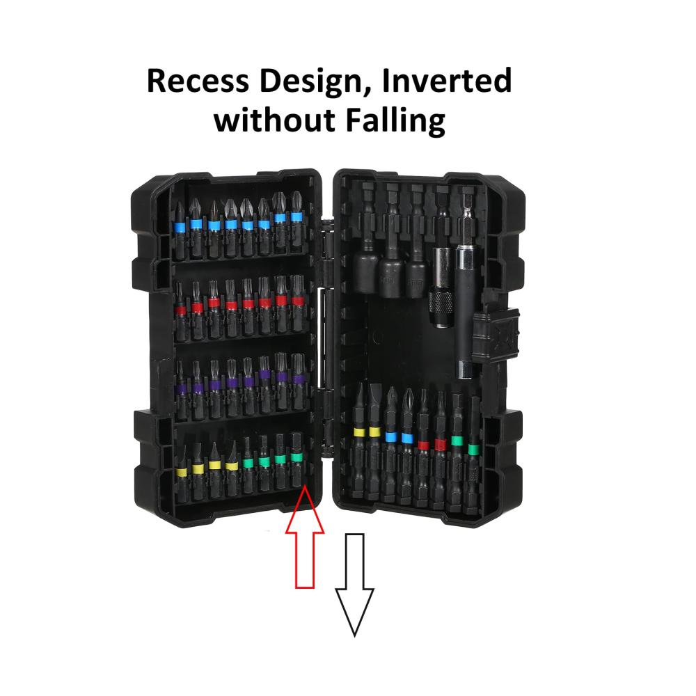 Tragbarer Aufbewahrungskoffer aus Kunststoff mit sicherem Verschluss, um die Bits sicher aufzubewahren, ordentlich organisiert und leicht zu finden.