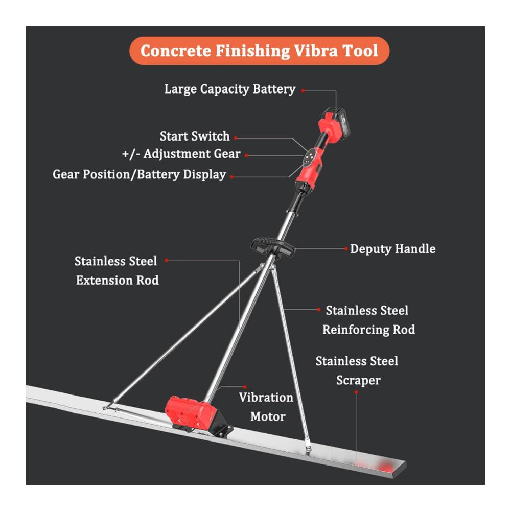 Das Edelstahl-Akku-Estrich-Beton-Estrich-Vibrationsset bietet eine beeindruckende Leistung und Flexibilität. Mit einer 9-Gang-Einstellbaren Vibrationsfrequenz haben Sie die volle Kontrolle über den Arbeitsprozess, um präzise und effiziente Ergebnisse zu erzielen.