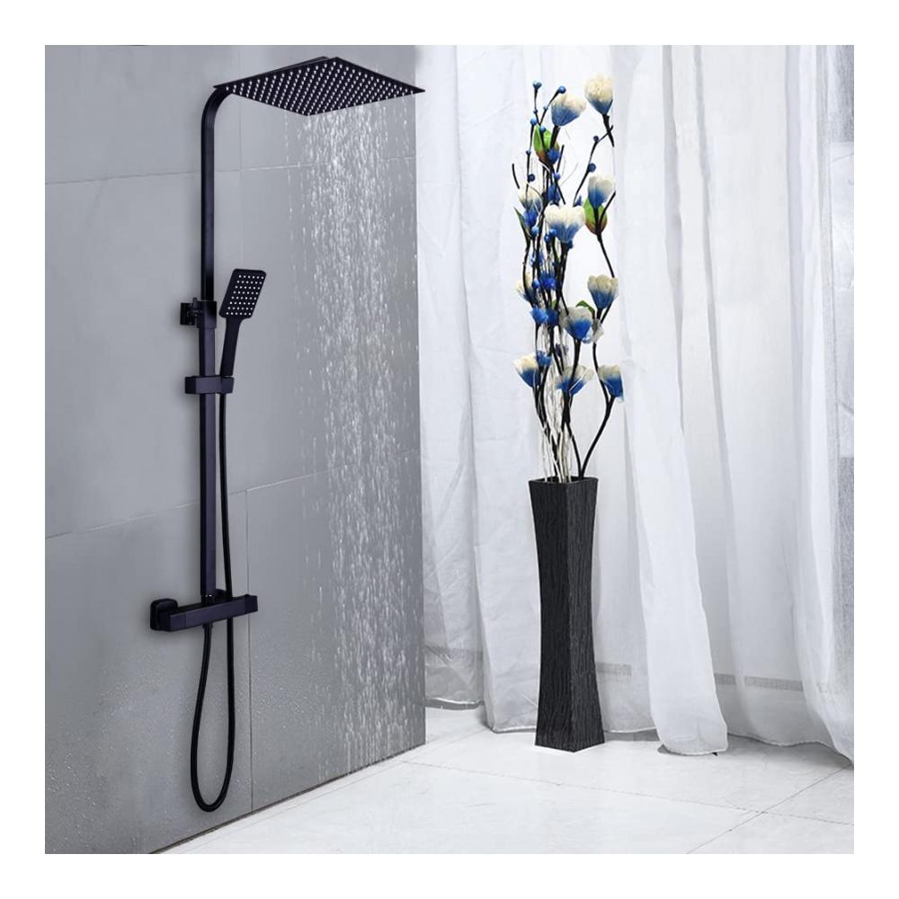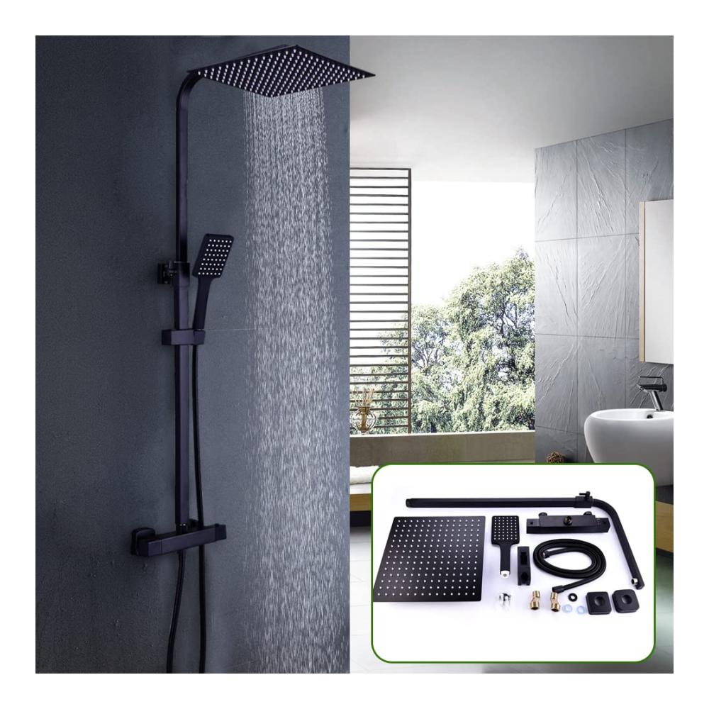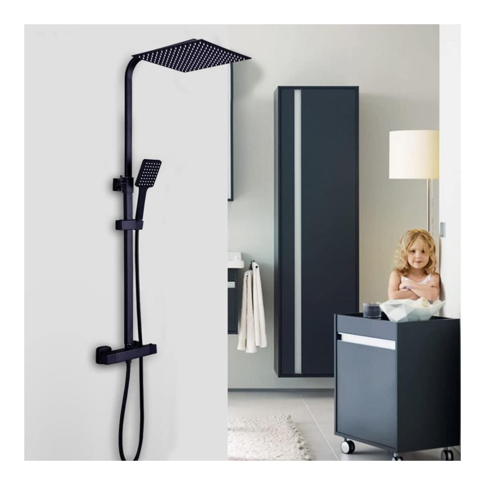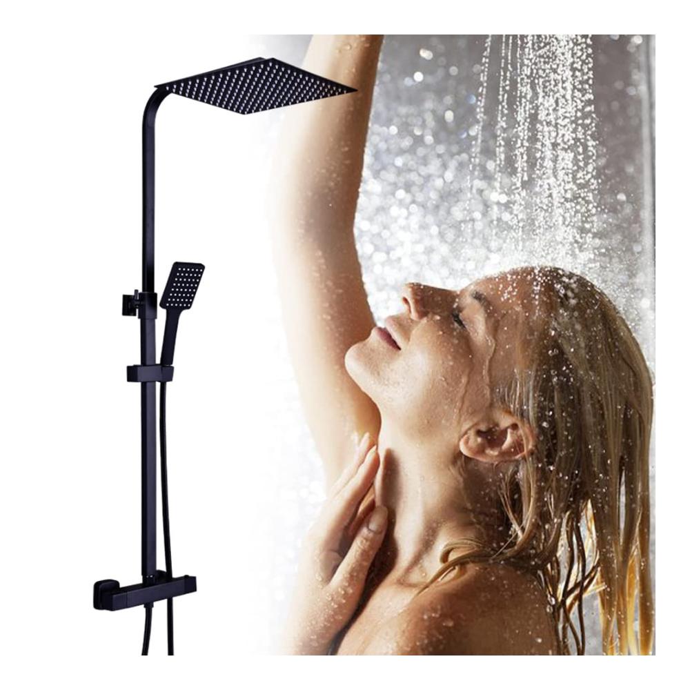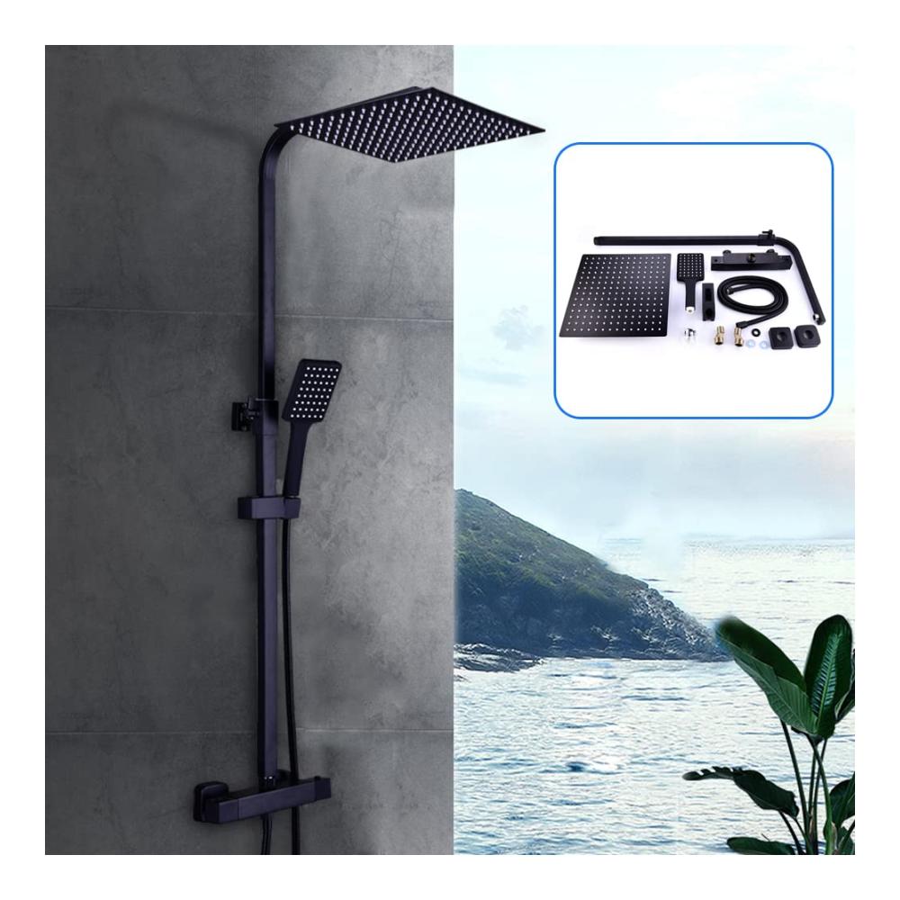 Regendusche Duschsystem Thermostat Duschset mit Thermostatarmatur Matt Schwarz Handbrause Dusche Mischbatterie Duschthermostat mit Regendusche (XXL Kopfbrause 30x30cm)