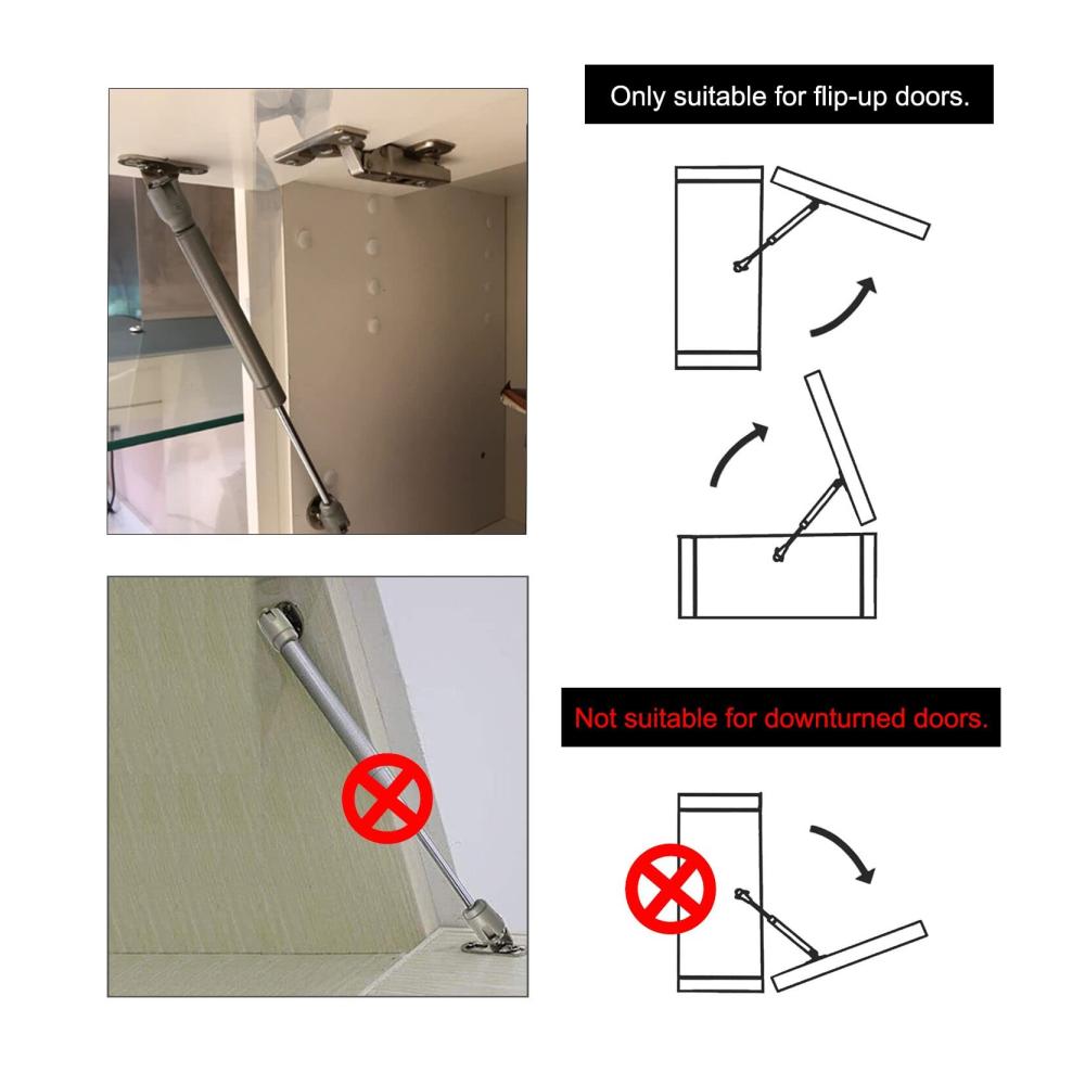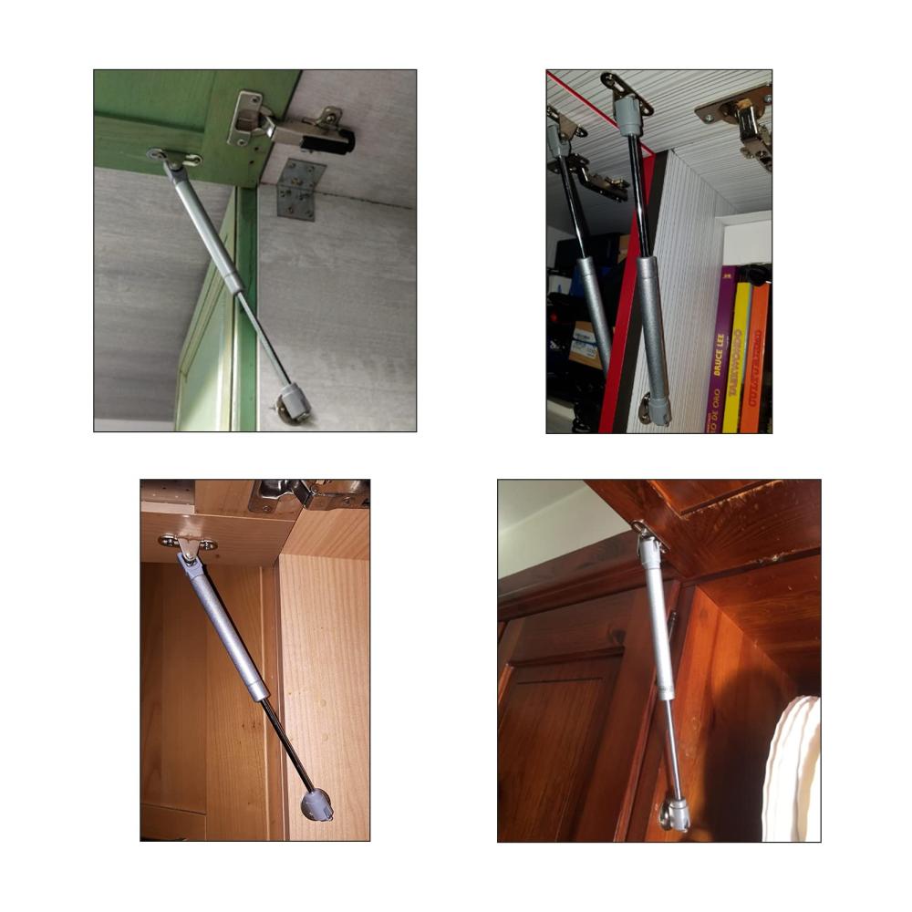 - Gas Strut-Hardware, geben Sie mehr Überraschungen. Geeignet für Türen, Schränke, Spielzeugkisten, Möbeltüren, Teesets, Motorradkoffer, große Angelkastenabdeckungen, Dachschränke für Campingfahrzeuge usw. Mit sanftem Öffnungs- und Schließeffekt, ideal für Falttüren.