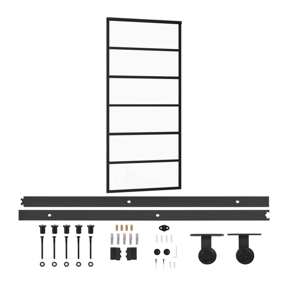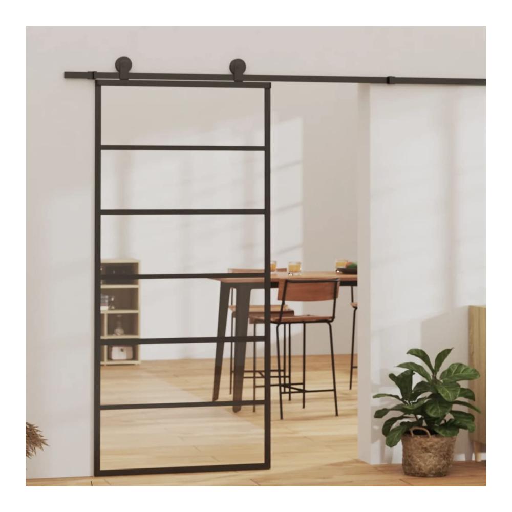 Schiebetor Deluxe Modernes Glasschiebetür Komplettset – 90 x 205 cm Innenraum Tür mit Aluminiumrahmen ESG-Glas & Gleitschiene 200 cm. Premium Schiebetürsystem für stilvolles Wohnambiente