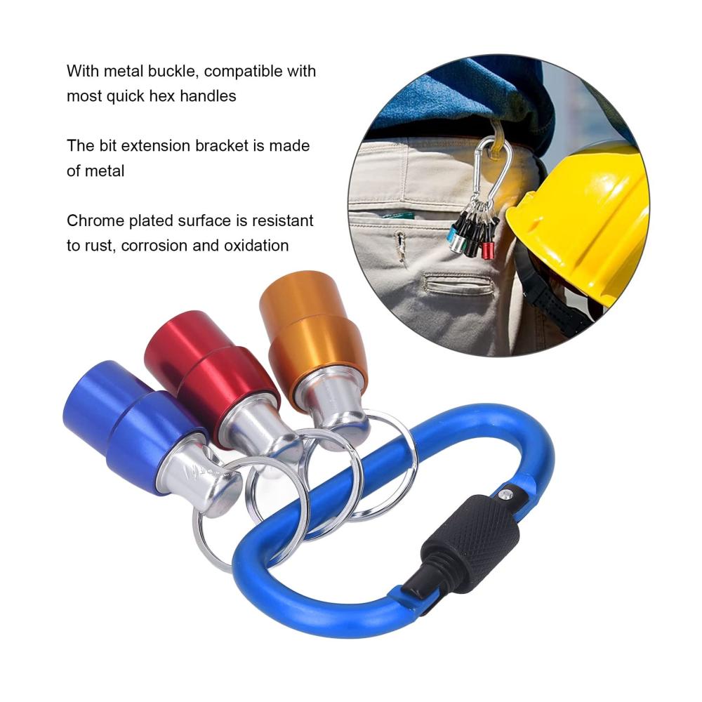 Sicherheitsgewährleistung: Mit einem Design, das darauf ausgerichtet ist, ein versehentliches Herunterfallen des Sechskantgriffs zu verhindern, bietet dieser Bithalter-Schlüsselanhänger zusätzliche Sicherheit, insbesondere bei Arbeiten in der Höhe. Der integrierte Metallverschluss zum Aufhängen und die Schlüsselanhängerfunktion sorgen für einen sicheren Tragekomfort, verringern das Risiko potenzieller Unfälle und erhöhen die Sicherheit bei der Verwendung