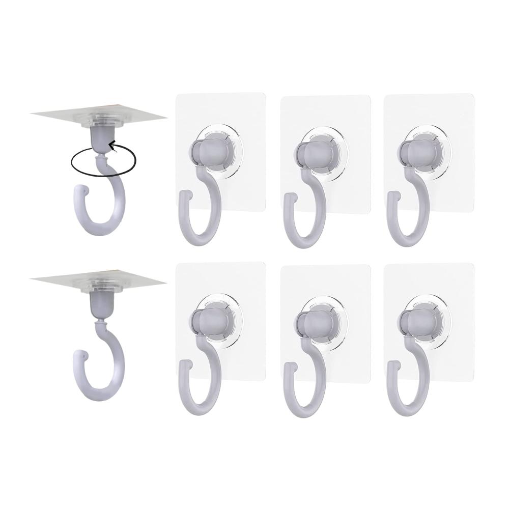 8 Stücke Haken Selbstklebend 360° Drehbar Deckenhaken Wasserdicht Wandhaken Handtuchhaken Badezimmerhaken Deckenhaken Ohne Bohren für Bad Haus Küchenschrank Büro Decke – 4.5kg Belastung MAX- Grau